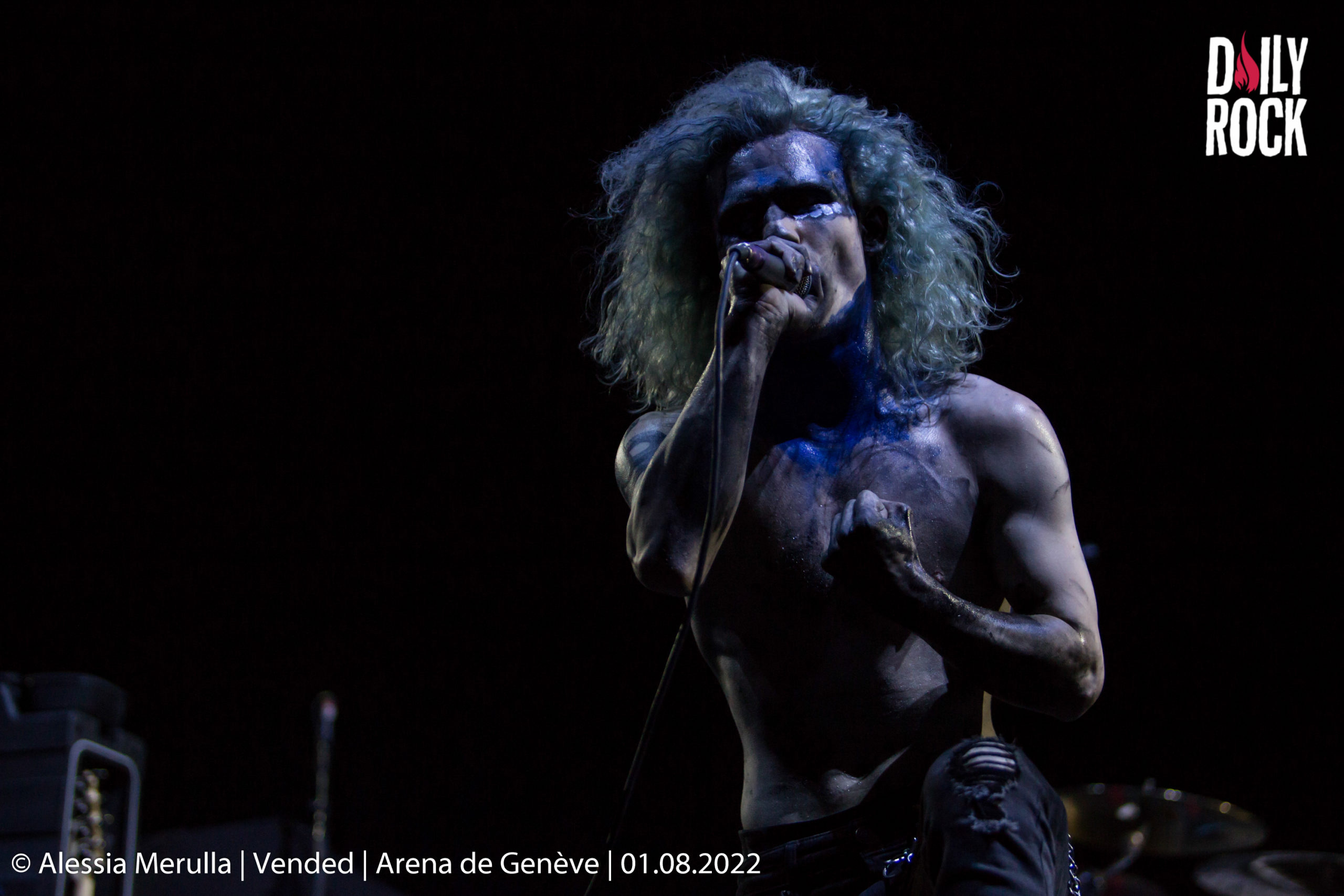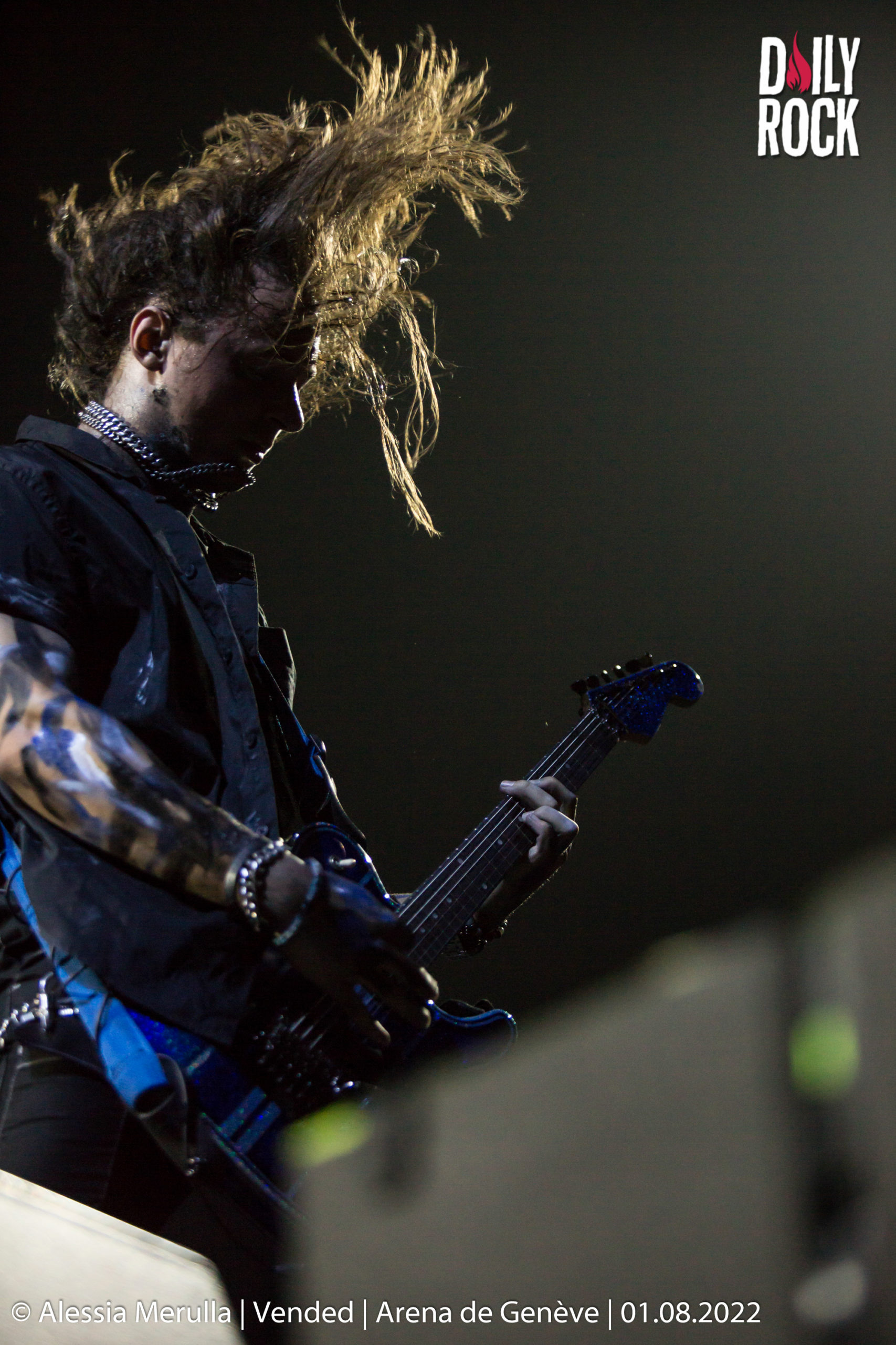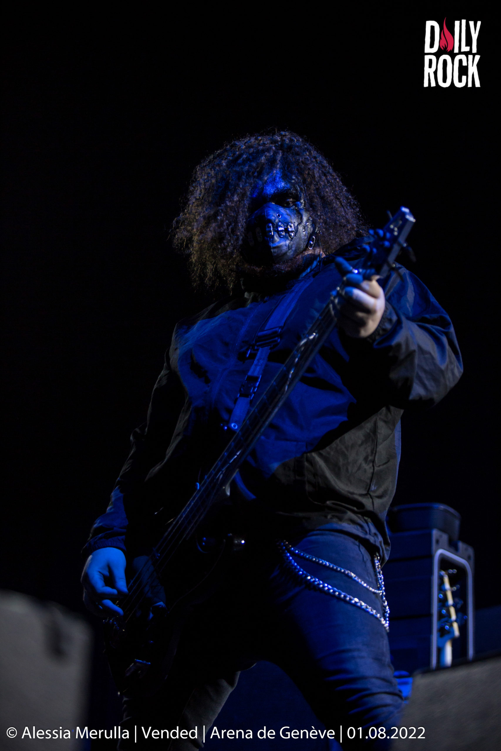 Plus tôt dans la soirée, Les jeunes de Vended avaient pour mission d’accueillir le public genevois a l’Arena et de le mettre en condition pour la suite des événements. Certains membres du groupe vous font penser à quelqu’un? Normal, le chanteur et le batteur ne sont autres que les fils respectifs de Corey Taylor et Shawn Crahan!