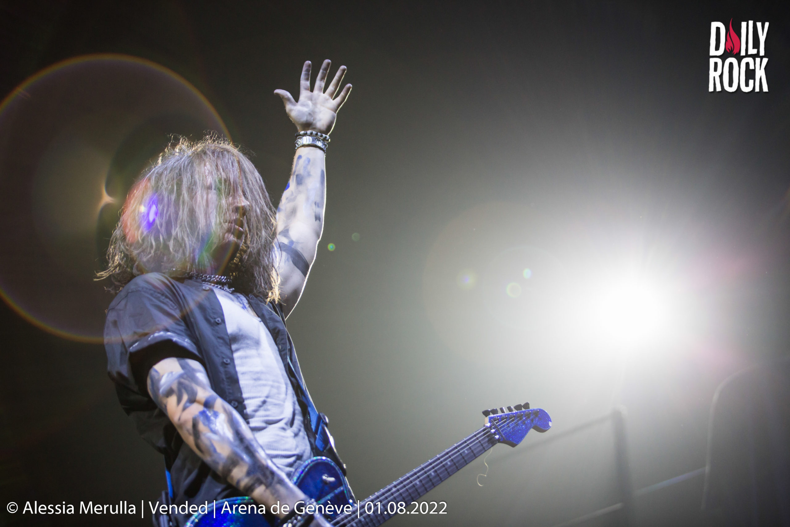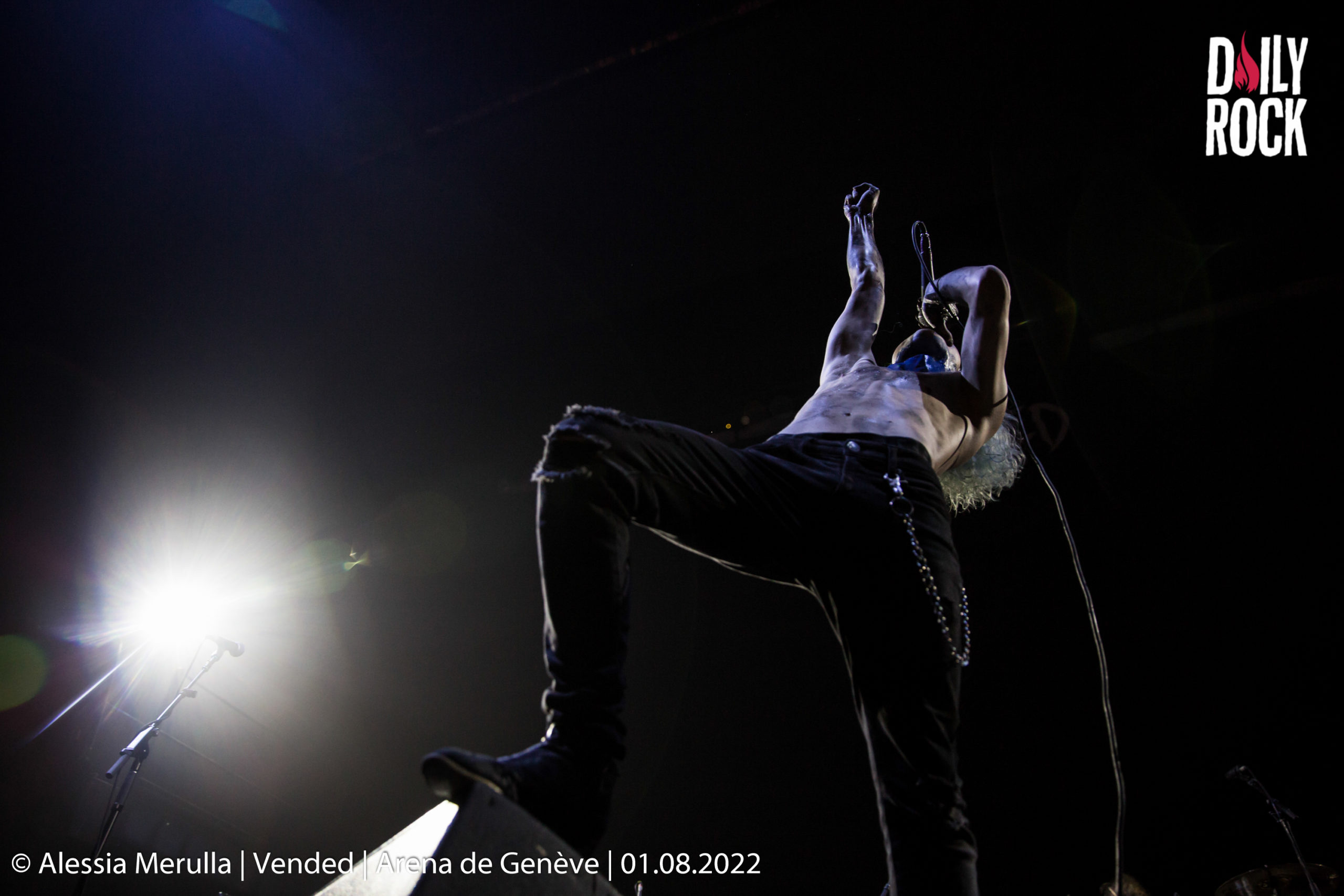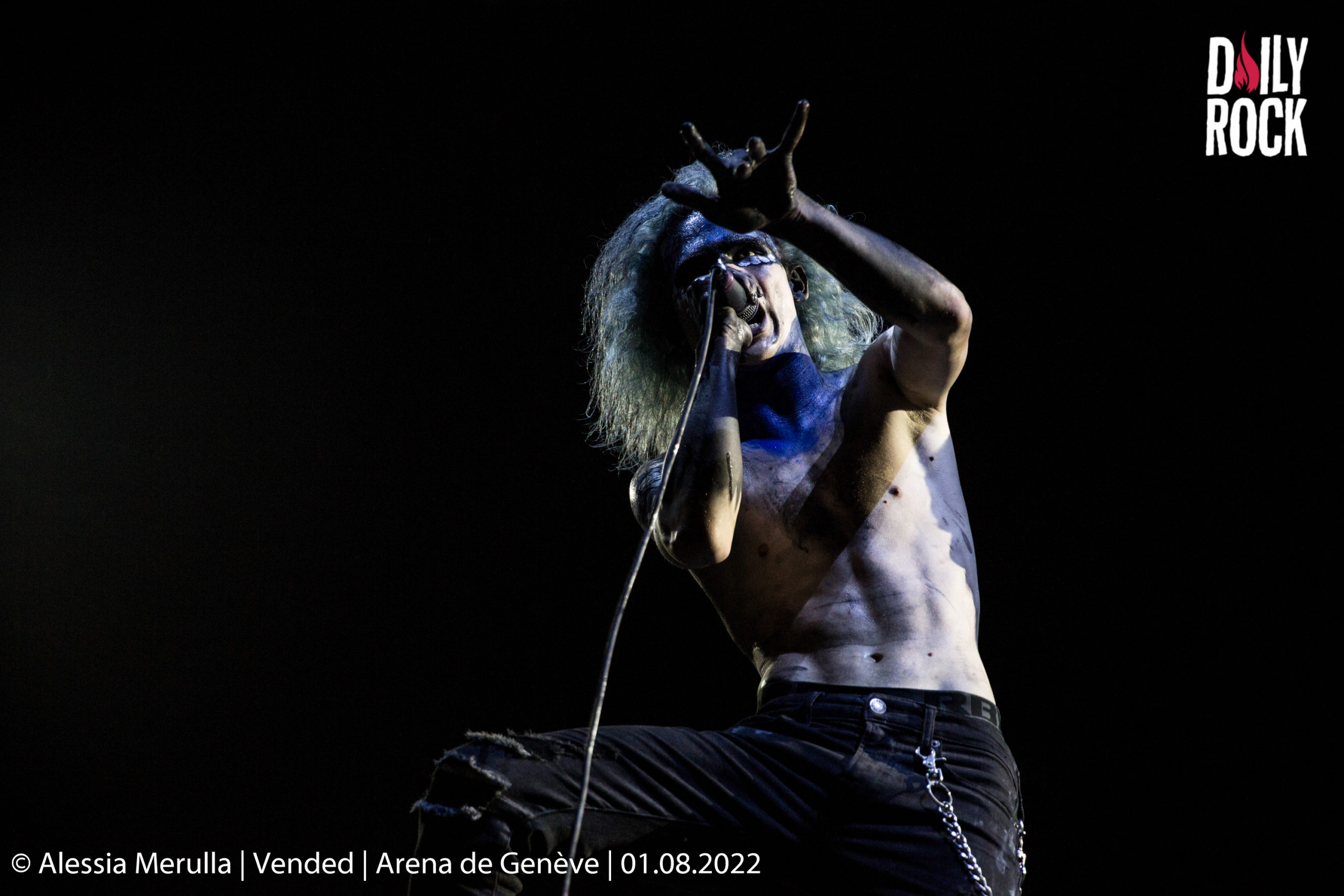 Plus tôt dans la soirée, Les jeunes de Vended avaient pour mission d’accueillir le public genevois a l’Arena et de le mettre en condition pour la suite des événements. Certains membres du groupe vous font penser à quelqu’un? Normal, le chanteur et le batteur ne sont autres que les fils respectifs de Corey Taylor et Shawn Crahan!