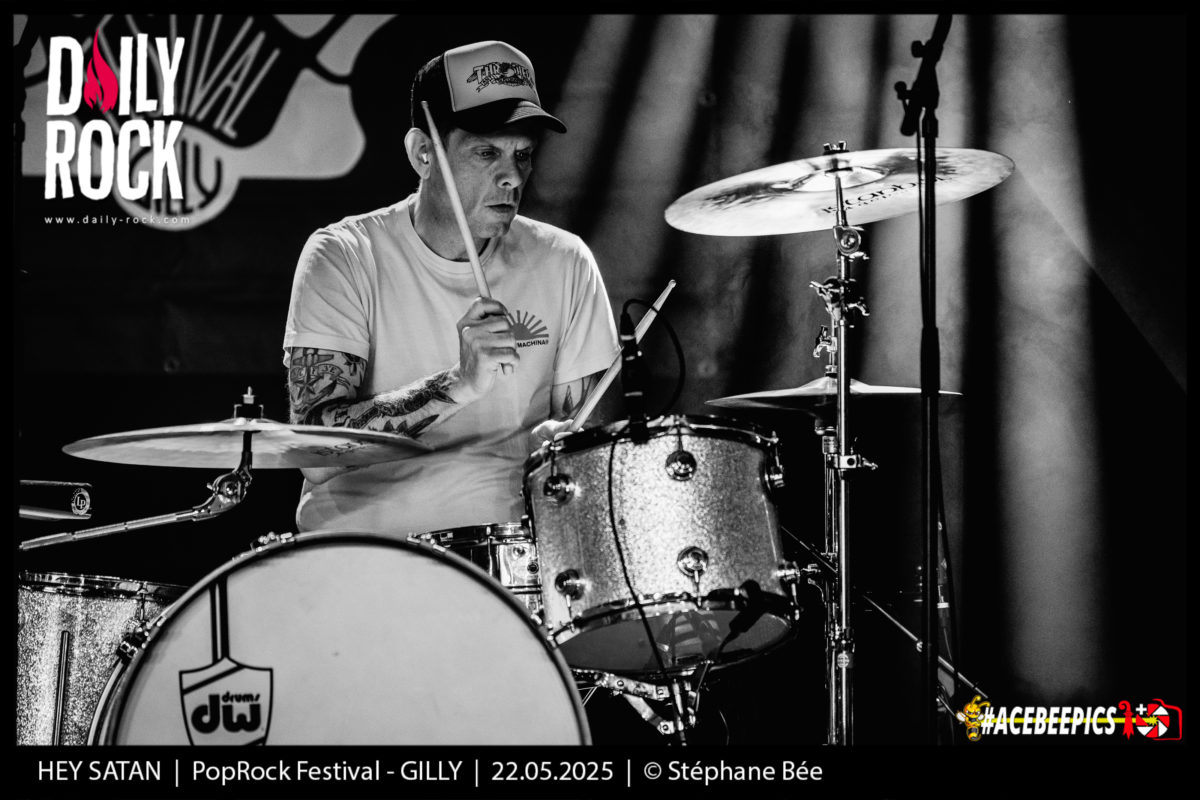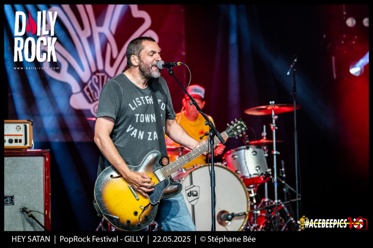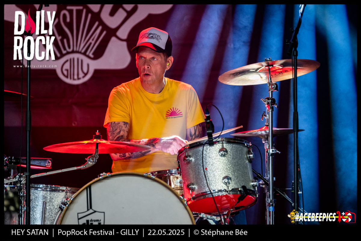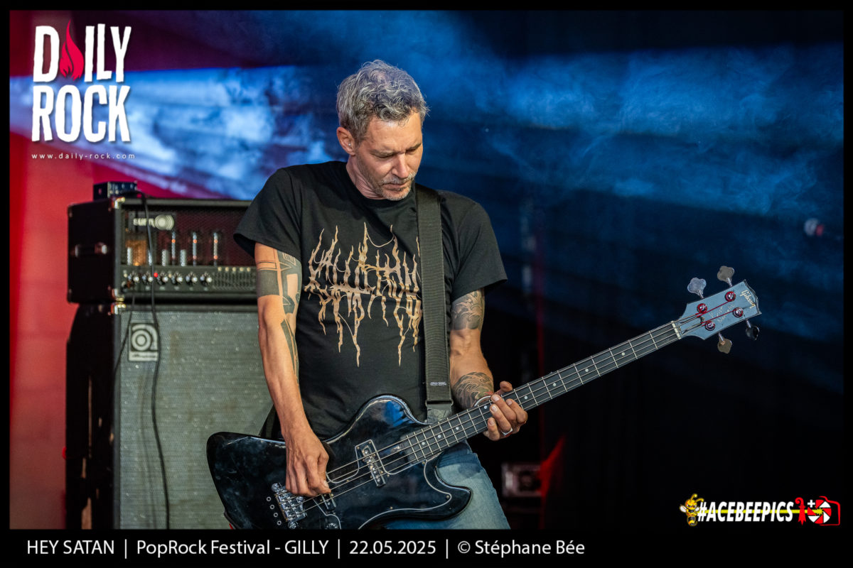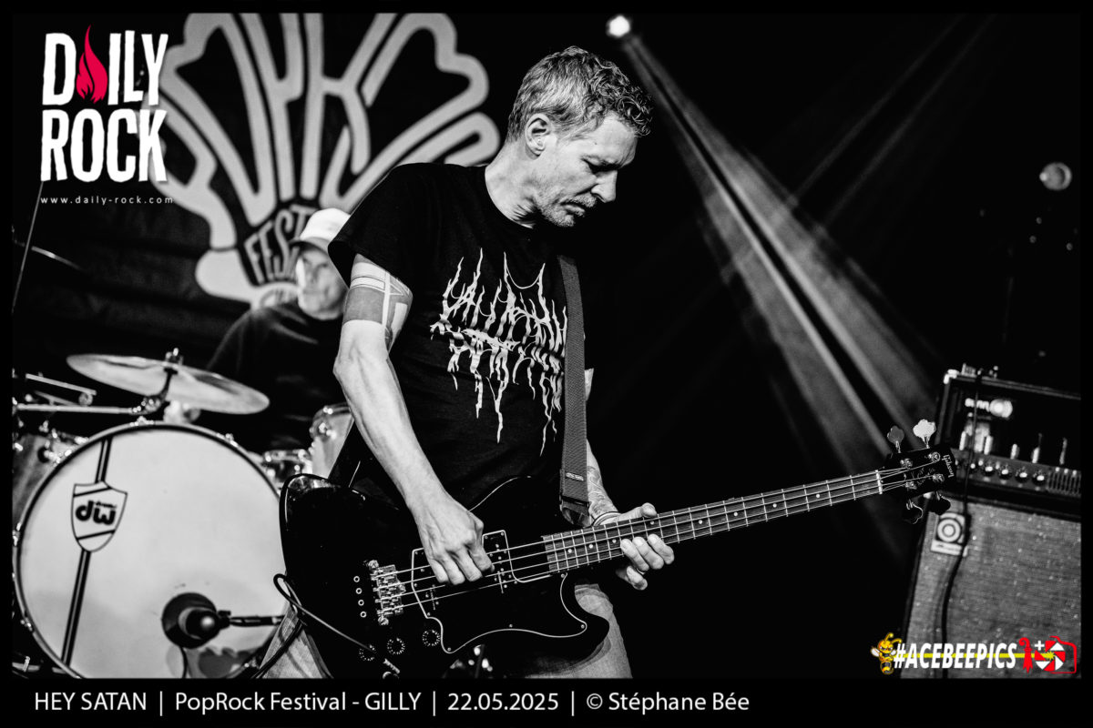 Hey Satan lâche les chevaux d’emblée, ce qui n’est pas pour nous déplaire, et réchauffe le public transi. Si la pluie a cessé – nous offrant même un magnifique arc-en-ciel sur le Léman – la température est en chute libre. On ne dira jamais assez tout le bien que l’on pense du trio lausannois, très bons sur album, excellents en live. Sur fond de stoner qui dépote, on retrouve des effluves heavy limite punk (Clutch, RATM, Mötörhead…). Une cure survitaminée que l’on apprécie grandement et un nouvel EP (‘Flamingoes’) sorti en début d’année à savourer sans modération.