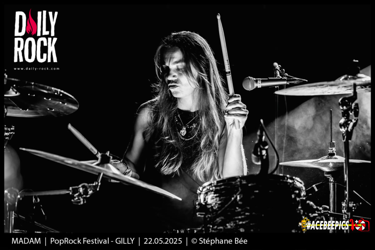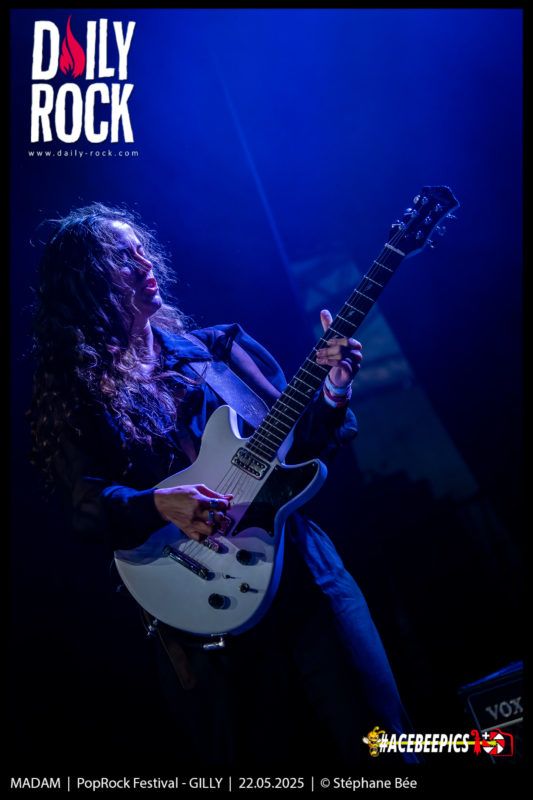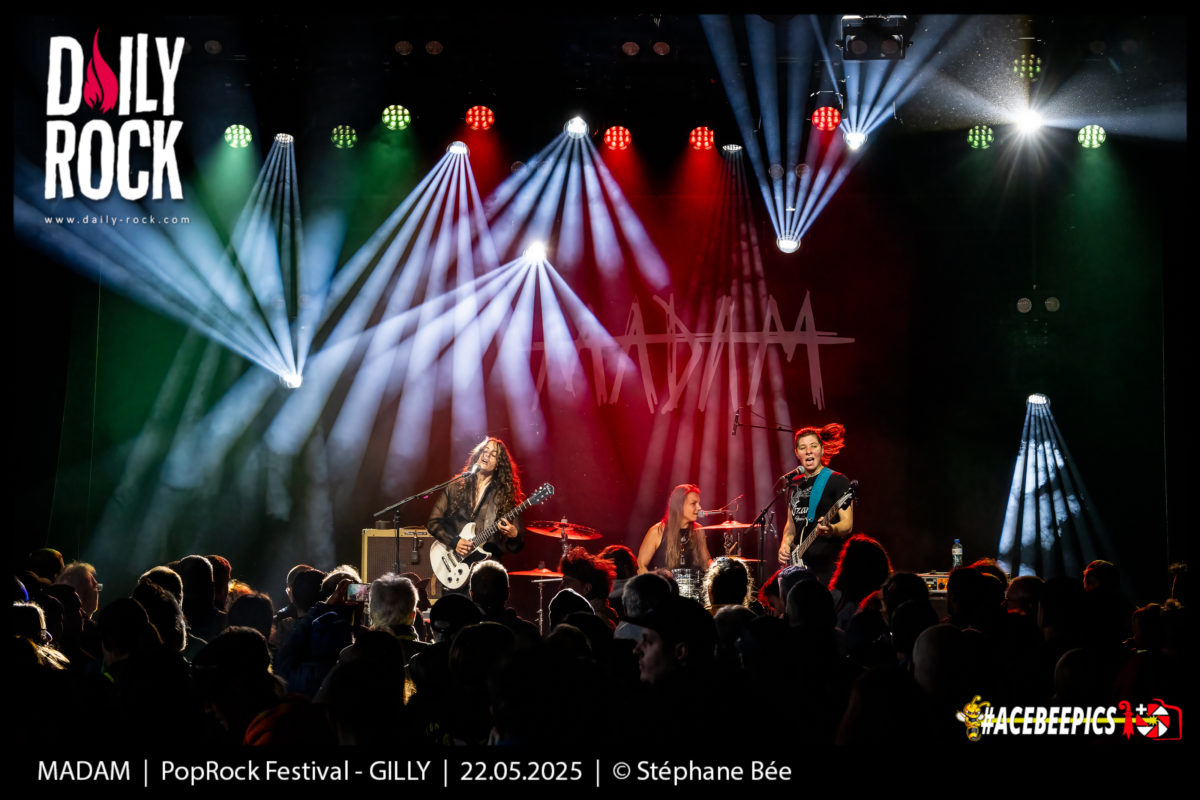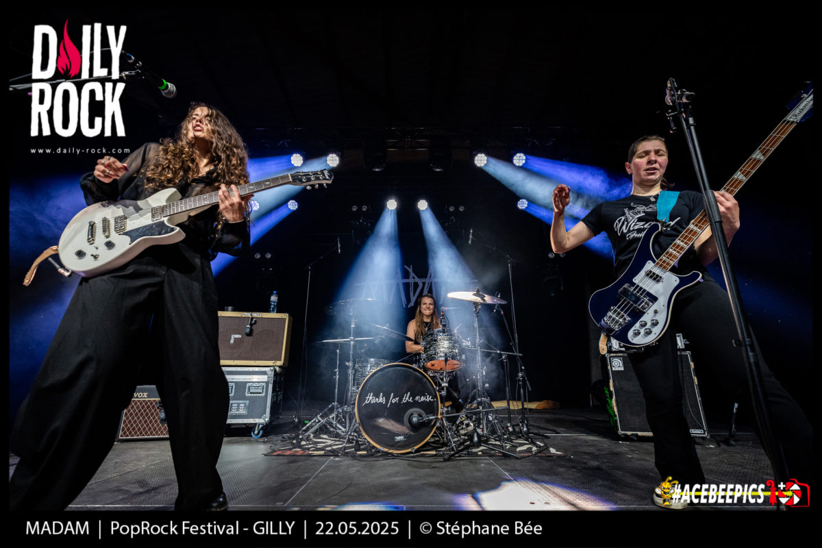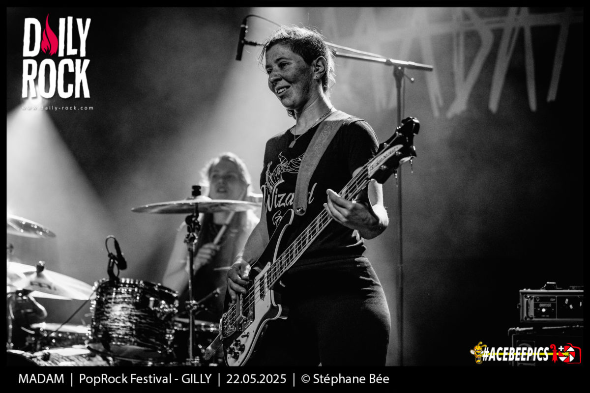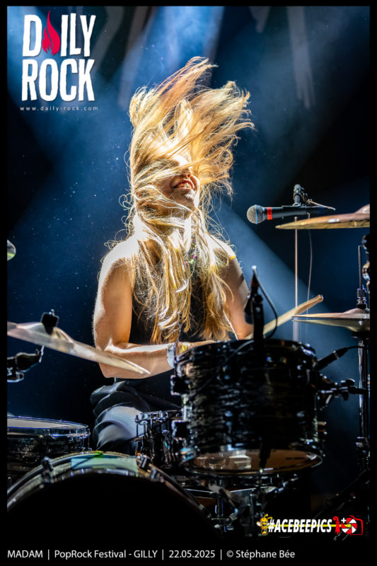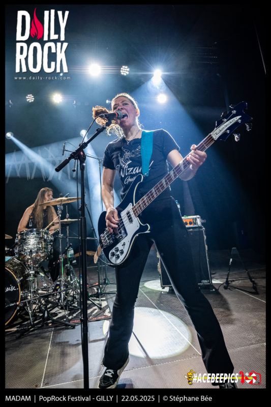 La surprise de la soirée est venue avec Madam, trio (à nouveau !) de Toulousaines dynamiques et rayonnantes. Du ‘rock bagarre content’ – comme elles se plaisent à définir leur style – un power rock jouissif qui ne laisse aucun répit à l’audience sans cesse titillée par Gabbie Burns, chanteuse et guitariste du groupe. Au taquet sur scène, elles n’ont aussi pas de cesse sur leurs tournées très fournies en dates hexagonales mais aussi helvétiques. On a apprécié les touches de The Stooges / Iggy Pop, Superbus et The White Stripes entre autres, qui, fusionnées, leur donne un style original. A ne manquer sous aucun prétexte lors de leur prochain passage en Suisse.