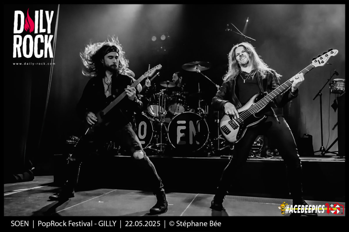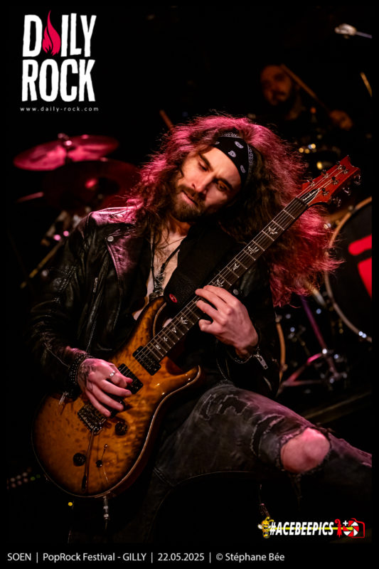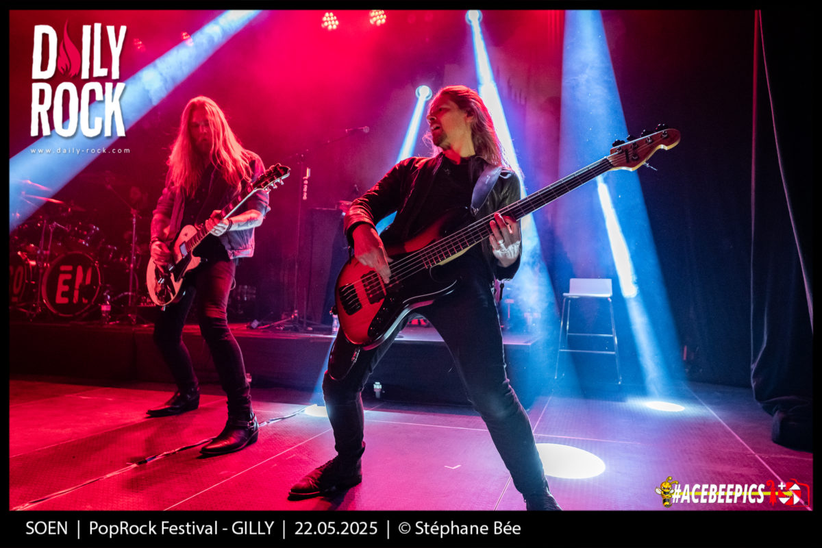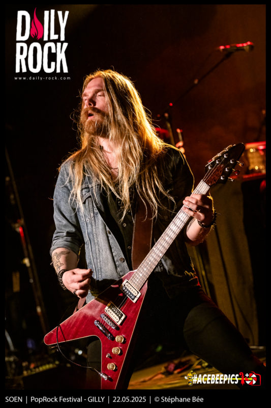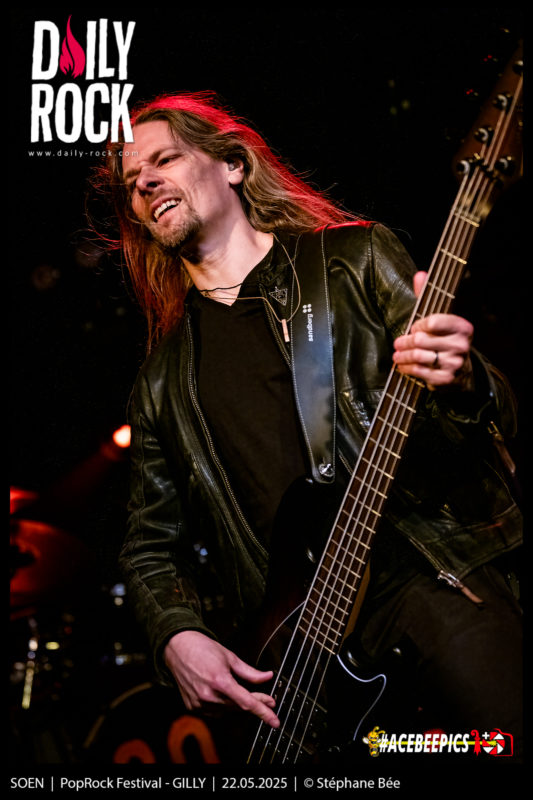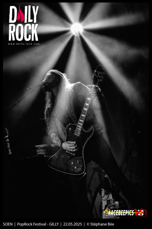 La tête d’affiche de la soirée de jeudi revenait bien sûr à Soen. C’était la première fois que les Suédois se produisaient en Romandie, et bon nombre de fans – à voir les t-shirts à leurs couleurs – s’étaient passés le mot et n’allaient pas manquer cet événement. Une fois encore, chapeau à l’équipe du Poprock car cette date n’était ni plus ni moins que le lancement de la tournée estivale des festivals du groupe. Impressionnante progression de Soen qui est l’un des meilleurs groupes de scène actuels. Le charisme de Joel Ekelöf qui capte le regard du public et vient à son contact sur le devant de la scène, la pureté et la maîtrise de son chant, les soli spectaculaires et aériens de Cody Ford, le lead guitariste américain, valent à eux seuls le déplacement.