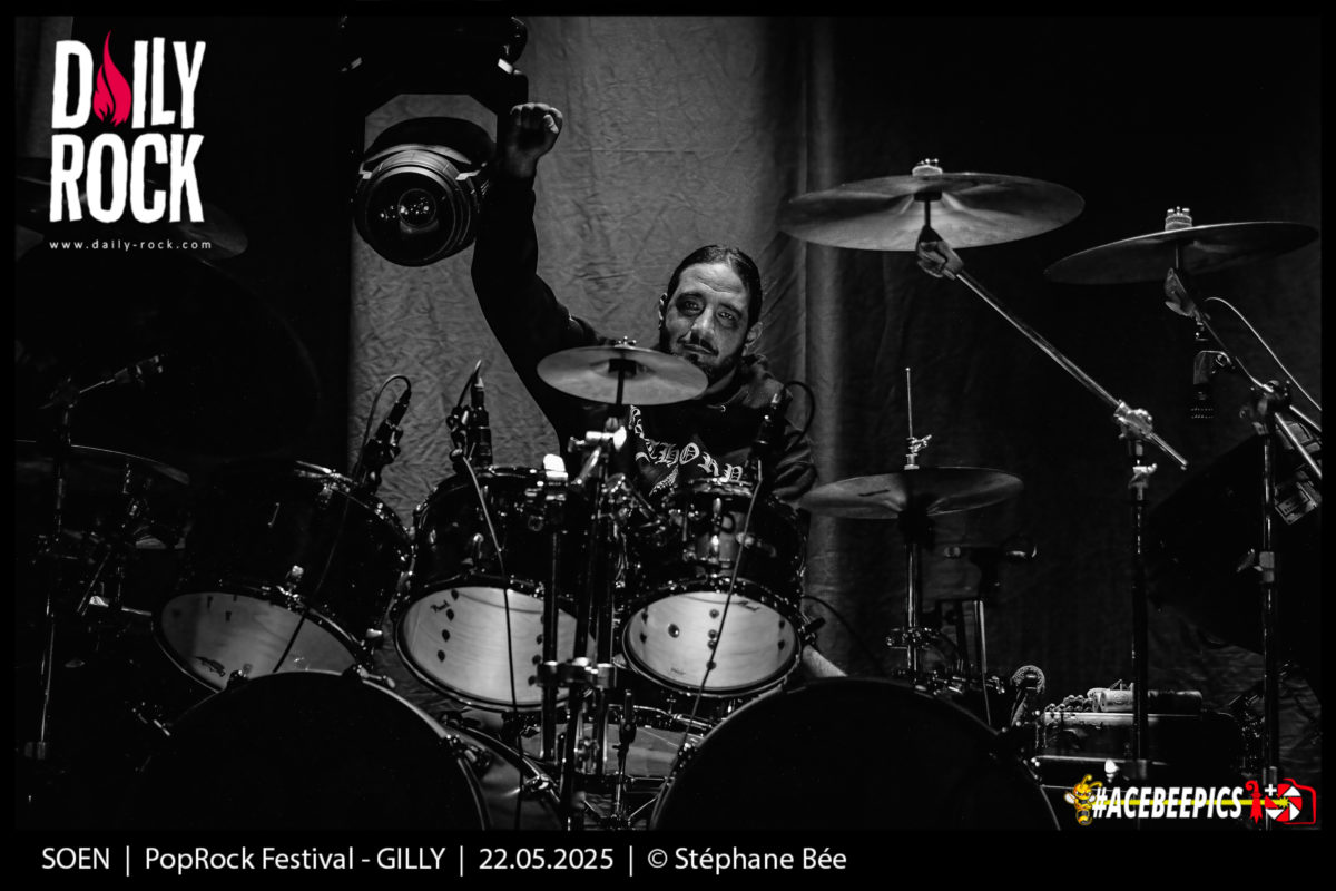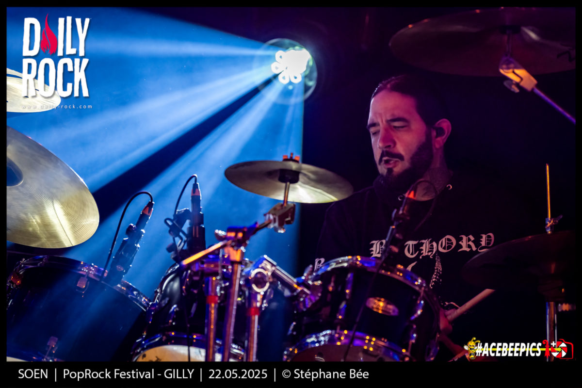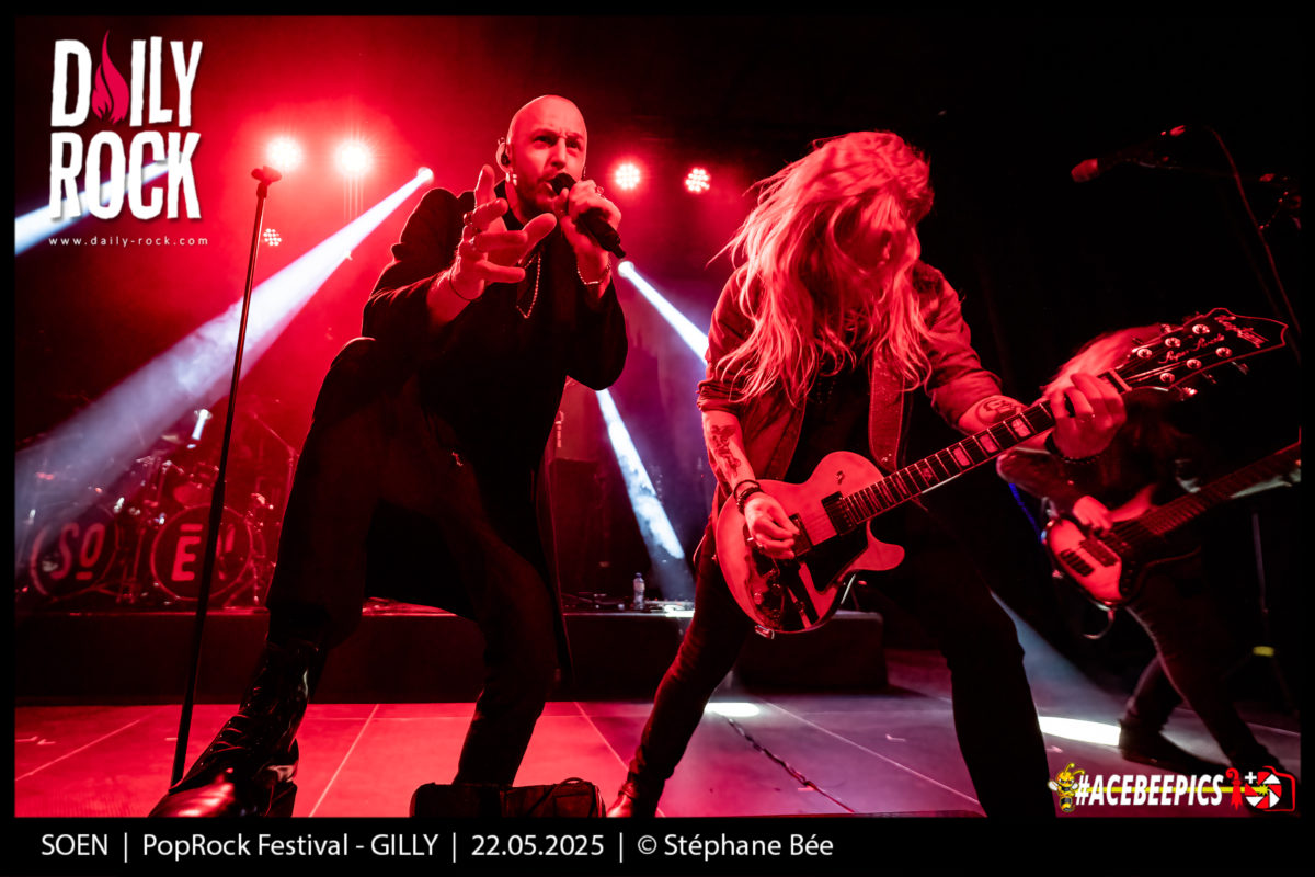 La tête d’affiche de la soirée de jeudi revenait bien sûr à Soen. C’était la première fois que les Suédois se produisaient en Romandie, et bon nombre de fans – à voir les t-shirts à leurs couleurs – s’étaient passés le mot et n’allaient pas manquer cet événement. Une fois encore, chapeau à l’équipe du Poprock car cette date n’était ni plus ni moins que le lancement de la tournée estivale des festivals du groupe. Impressionnante progression de Soen qui est l’un des meilleurs groupes de scène actuels. Le charisme de Joel Ekelöf qui capte le regard du public et vient à son contact sur le devant de la scène, la pureté et la maîtrise de son chant, les soli spectaculaires et aériens de Cody Ford, le lead guitariste américain, valent à eux seuls le déplacement.