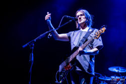 La Halle 622 est une relativement nouvelle venue dans le paysage des salles de concerts en Suisse. Elle est belle et grande (elle peut accueillir jusqu’à 3’500 spectateurs), et est située juste à côté de la gare de Oerlikon (donc à 10 minutes à pied du Hallenstadion). Et c’est dans ce bel écrin que Steven Wilson, le pape de la prog, a posé ses valises le temps d’une soirée unique en Suisse en ce 7 février. Dans ces dernières, il avait emmené la jeune Romande (oui !) Donna Zed afin d’assurer sa première partie. De prime abord, on a été étonné de voir un groupe si « complexe » être précédé d’une performance aussi dépouillée : Donna Zed était en effet seule sur scène avec son clavier, avec une unique lumière fixée sur elle durant toute sa performance. Mais force est de constater que la mayonnaise a pris avec un public certainement réceptif à ce double talent autant vocal qu’instrumental. Bravo à elle. Après Donna Zed, c’est donc Steven Wilson et son groupe qui ont pris possession de la scène pour une performance éclectique, passant allégrement (oui, le bonhomme était plutôt enjoué) des titres à l’orientation plus pop de son dernier album (‘To The Bone’) au prog le plus ‘exigeant’ de sa discographie précédente. Avec, comme Steven Wilson l’a annoncé en début de concert, une majorité de titres jamais joués en live auparavant. De quoi manifestement ravir le public venu en masse pour l’applaudir. Retour en images (qui ne sont pas forcément toutes de bonne qualité puisque, sur trois chansons à disposition des photographes, Steven Wilson a eu la bonne idée de jouer les deux premières derrière une sorte de ‘moustiquaire’ où étaient projetées des images, puis d’envoyer les photographes dans le public pour la troisième…).
