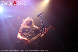 La salle est déjà bondée, malgré la file à l’entrée qui s’étend presque jusqu’au Base Bar, lorsque Florence Black démarre son set. Avec ses riffs qui font inconsciemment bouger la tête, le groupe démontre sa puissance. Le public semble plutôt réceptif au rock des gallois, sans pour autant aller jusqu’à pogoter. A la fin du set, les trois chevelus paraissent conquis et sortent de scène tout sourire.