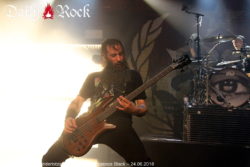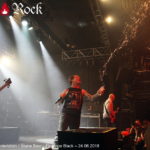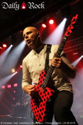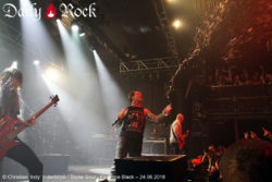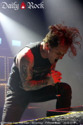 Ceux que tout le monde attendait, c’était bien Stone Sour. Et quel plaisir de les accueillir aux Docks pour leur unique date en Suisse, alors qu’ils jouaient au Hellfest pas plus tard que vendredi. Le sourire aux lèvres, sans prise de tête, le groupe démarre son show au milieu d’une pluie d’étincelles avec ‘Whiplash Pants’. Corey Taylor aspergera la foule d’eau puis de confettis à plusieurs reprises, le mélange idéal pour une fête réussie (même si ça colle !). Le public, pourtant, ne s’est réveillé qu’à la moitié du concert, lorsque le chanteur a lancé « vous avez le droit de danser, alors je veux tous vous voir danser sur la prochaine chanson ». Était-ce par manque de motivation ou parce que tout le monde admirait ses idoles ? On penchera plutôt pour la deuxième option. Le concert s’est terminé avec d’énormes marionnettes gonflables arborant d’immenses sourires, pour terminer dans la joie et la bonne humeur.