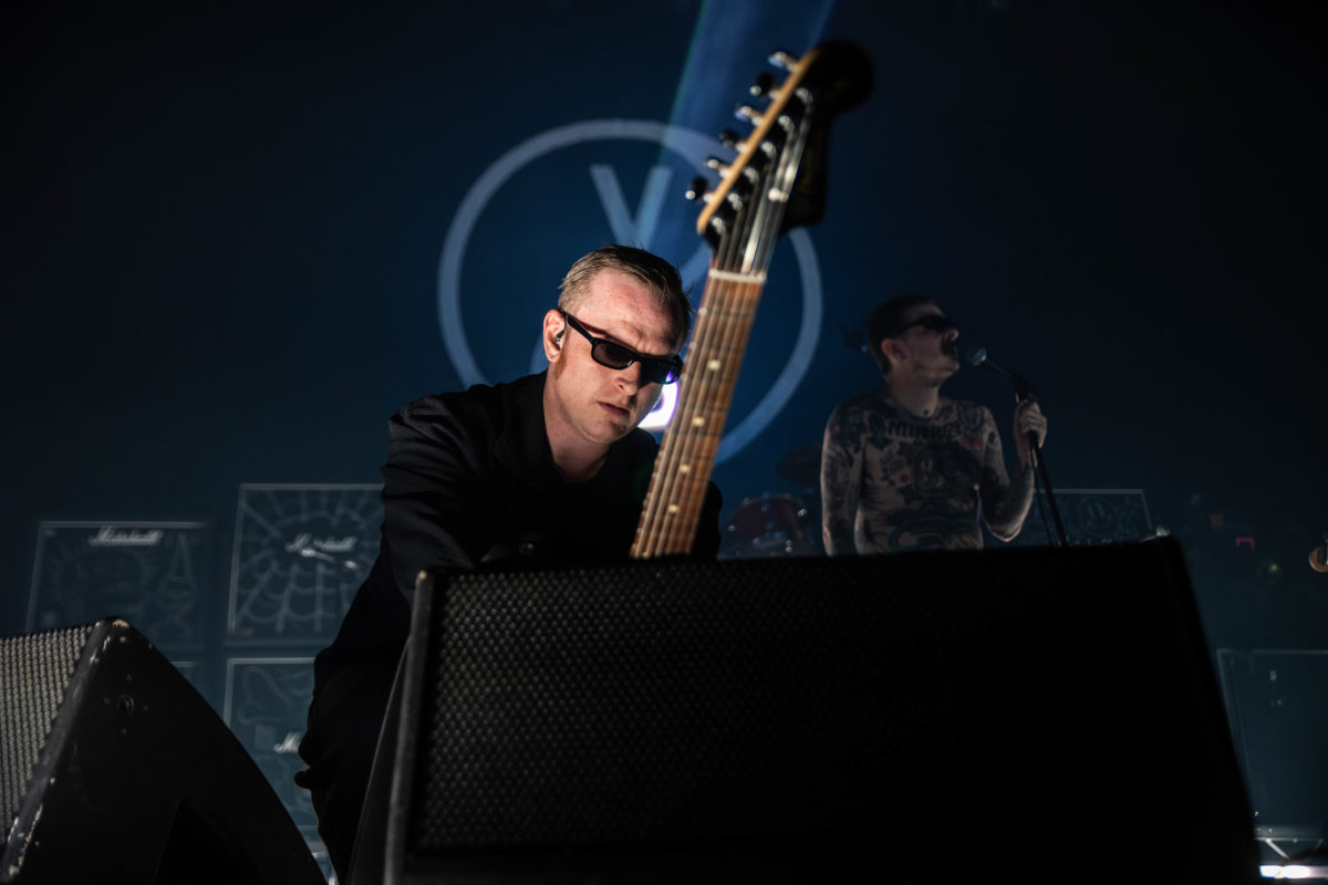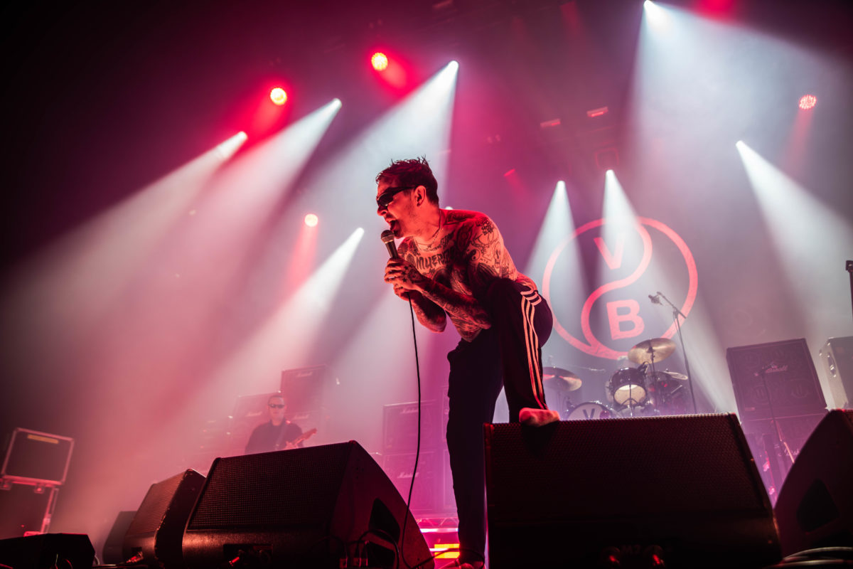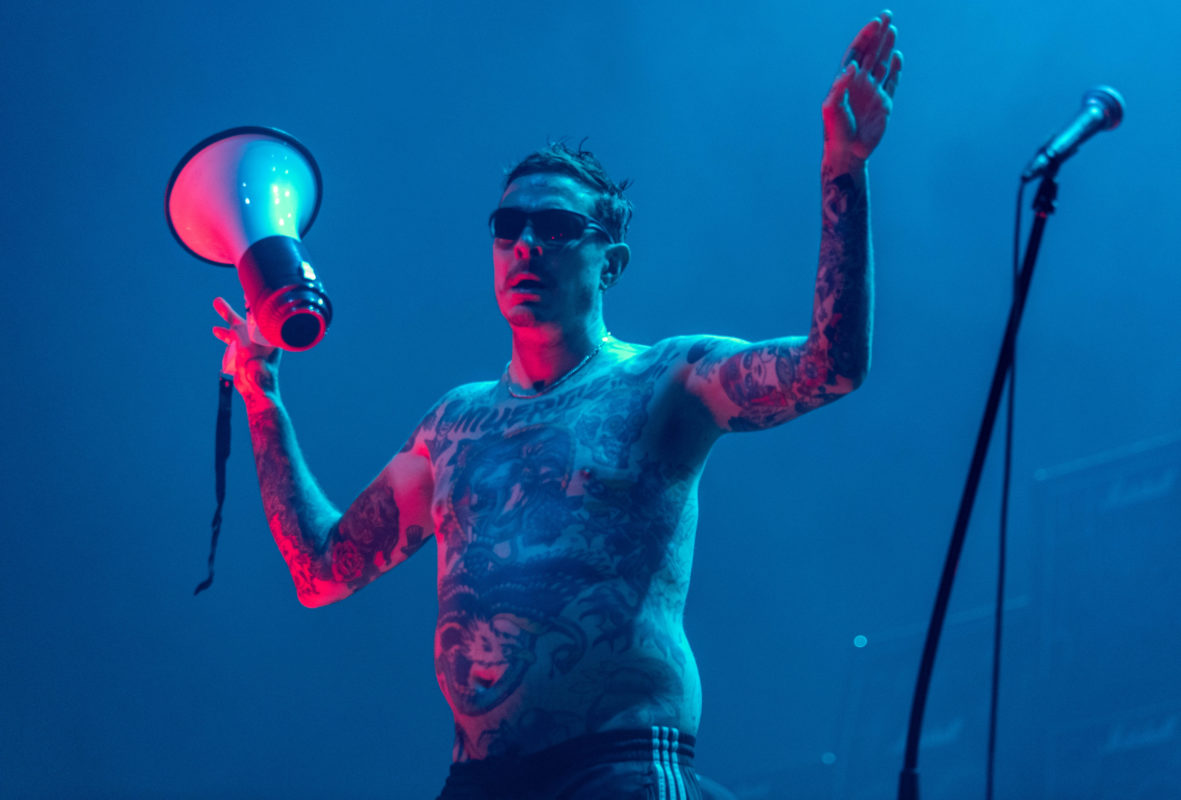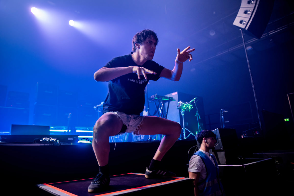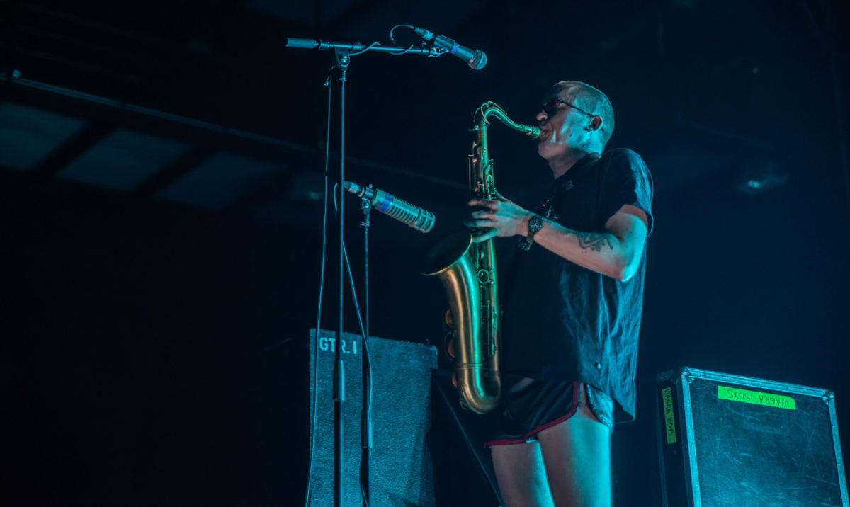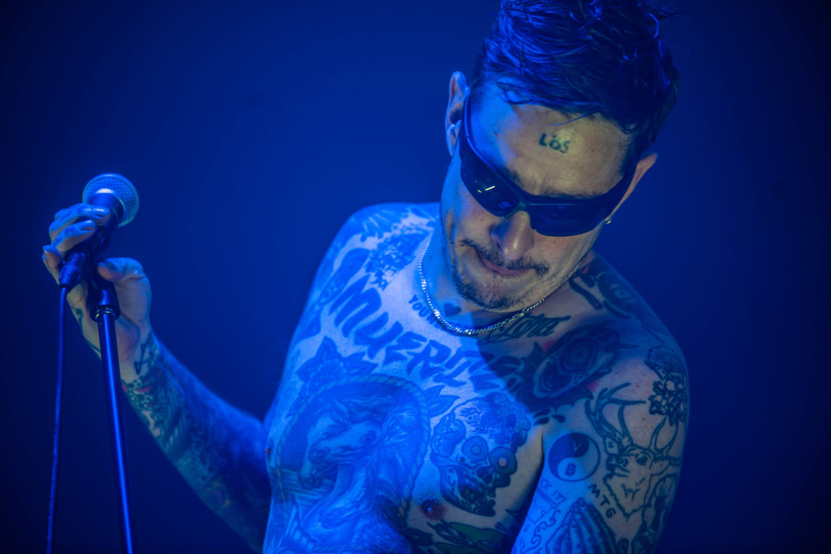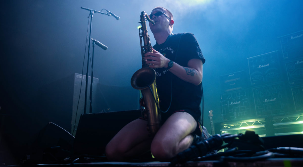 Samedi 10 mai 2025, Viagra Boys, soutenus par leurs compatriotes Boko Out, investissaient le Mainhall de notre adorée Rockhal. Depuis quelques années, les Viagra Boys sont devenus l’une des têtes de pont du label Rough Trade (Sleaford Mod’s, Amyl and the Sniffers…).Il faut dire qu’avant la sortie de leur (très bon) nouvel opus «ViagrAboys », le groupe a assuré la première partie de la tournée US des Queen Of The Stone Age en 2023. Cette cohabitation lors de plusieurs dates avec le combo de Josh Homme a dû changer leur façon de s’organiser (sur la forme et sur le fond). Le crew est donc aligné sur le front de scène. Derrière eux,posés sur des plateformes lumineuses, les amplis forment une skyline. Pas de lune dans ce paysage mais le logo VB enfermé dans le Yin et le Yang dessiné sur le fond de scène par un projecteur laser. Au centre de cet alignement, on trouve le batteur. Sa grosse caisse donne directement dans le dos du leader Sebastian Murphy. Les ailiers sont en short (saxo / flute d’un coté et sampler / clavier / congas de l’autre). A droite du chef, en costume lunettes noires, le guitariste et à sa gauche, le bassiste dont la transformation physique du bonhomme est à l’image du son de sa basse : rond, lourd avec de la testostérone à revendre…Bref,on imagine facilement cette équipe de Bad Boys façon Suicide Squad avec des costumes arborant une crevette sur le torse (ShrimpShack ForEver…). Les Viagra Boys sont donc venus pour défendre un bon album en nous offrant pas moins de 8 titres de ce dernier opus. Soit la moitié de la set list en alternant par des titres cultes issus des 5 albums de leur discographie (oui, 4 albums et 1 maxi pour être précis…). Fait notable lors de l’arrivée des musiciens sur scène, outre l’inflation de la protubérance abdominale et beaucoup d’échange avec le public, le chant de Sébastien Murphy est deux tons en dessous de ce qu’il nous propose habituellement. Du coup, sa voix plus rauque apporte une touche agréablement différente de l’album. La setlist idéale, bien rodée et pratiquement inchangée depuis le début de la tournée, va littéralement retourner la Rockhal pendant plus de 90 minutes. L’ouverture avec Man Made Of Meat suivi de Slow Leaner fait démarrer le public au quart de tour. Le bridge entre Waterboy et Punk Rock Loser nous fait découvrir la cohésion des compositions du groupe sur la durée de leur discographie: 3 albums joués en 4 chansons, ça commence très fort. S’ensuit Dirty Boys et la magnifique Uno II (que l’on aimerait qu’ils étirent au maximum tellement ce havre de paix paru court). Parmi les highlights de cette belle soirée, on se souviendra de Medicine For Horses avec un timbre de voix faisant penser au Boss de Springfield et à cette nouvelle interprétation de Research Chemicals avec une longue intro par strate sonore faisant penser aux meilleures prestations Métal…et pour couronner le tout, c’était l’anniversaire du petit bonhomme en short derrière le saxophone. Il n’y a pas que The Hives au sommet du rock en Suède, sur le versant Nord, un cordée de 6 voltigeurs bien barrés est en train de tutoyer les anges (et démons).