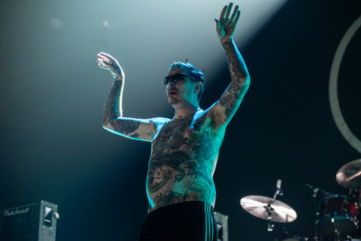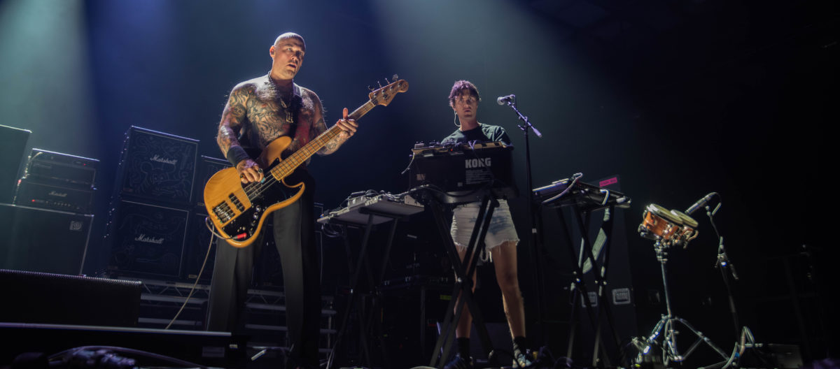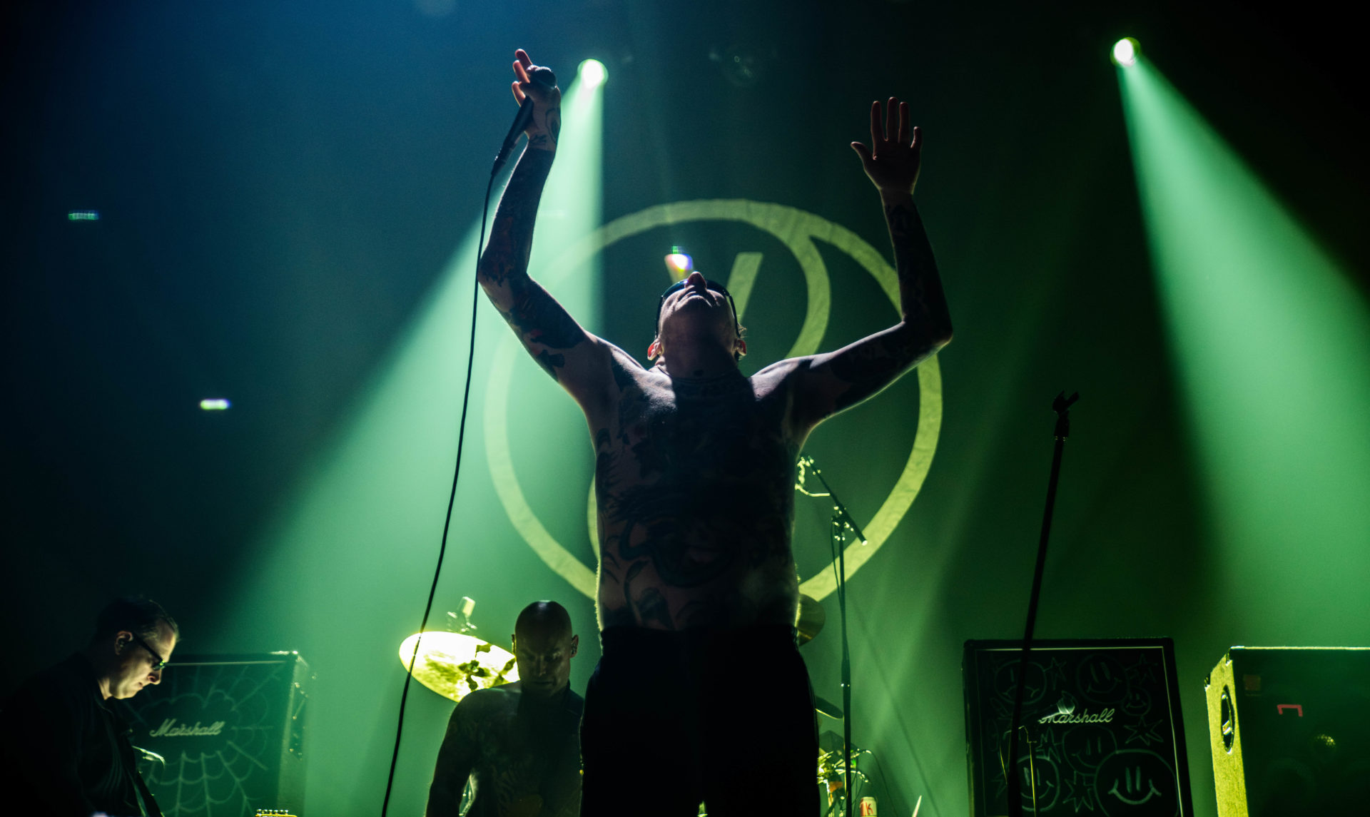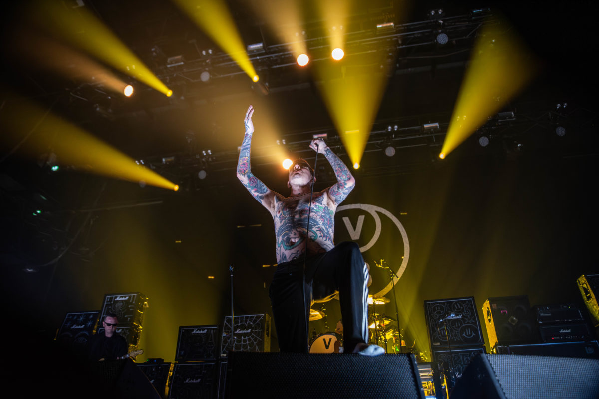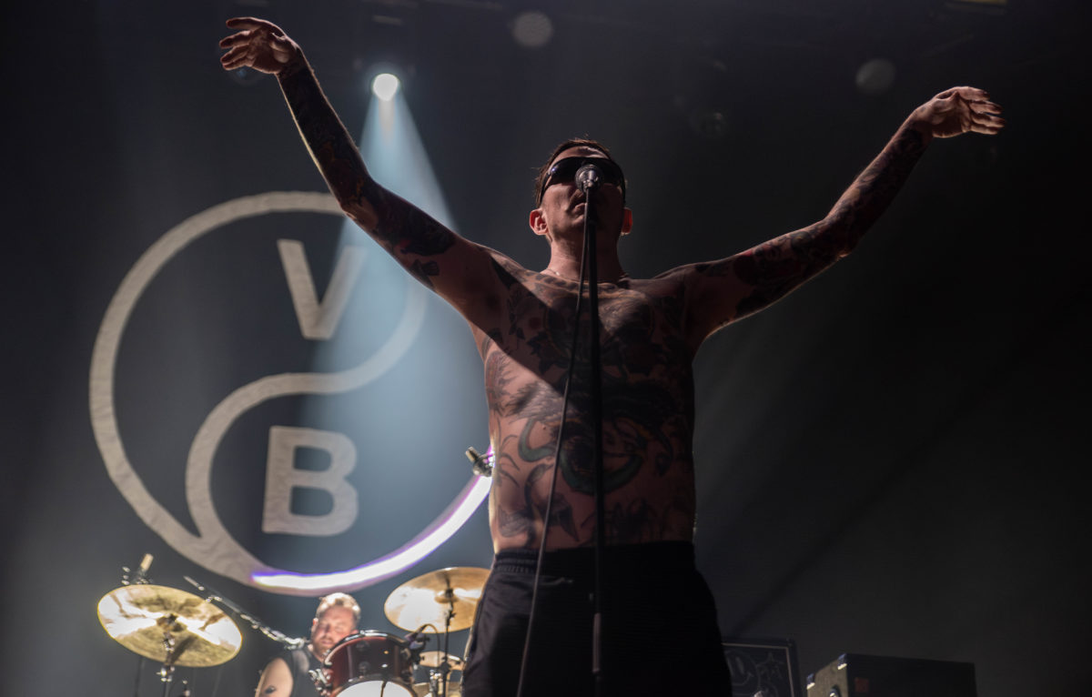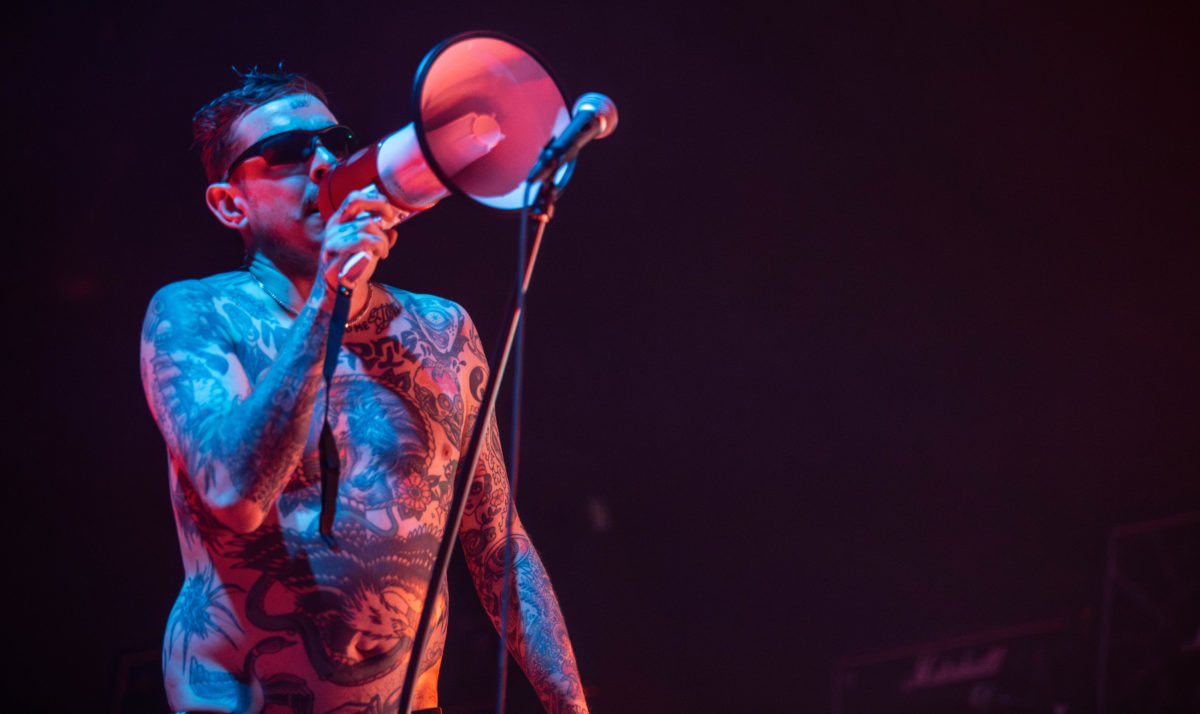 Samedi 10 mai 2025, Viagra Boys, soutenus par leurs compatriotes Boko Out, investissaient le Mainhall de notre adorée Rockhal. Depuis quelques années, les Viagra Boys sont devenus l’une des têtes de pont du label Rough Trade (Sleaford Mod’s, Amyl and the Sniffers…).Il faut dire qu’avant la sortie de leur (très bon) nouvel opus «ViagrAboys », le groupe a assuré la première partie de la tournée US des Queen Of The Stone Age en 2023. Cette cohabitation lors de plusieurs dates avec le combo de Josh Homme a dû changer leur façon de s’organiser (sur la forme et sur le fond). Le crew est donc aligné sur le front de scène. Derrière eux,posés sur des plateformes lumineuses, les amplis forment une skyline. Pas de lune dans ce paysage mais le logo VB enfermé dans le Yin et le Yang dessiné sur le fond de scène par un projecteur laser. Au centre de cet alignement, on trouve le batteur. Sa grosse caisse donne directement dans le dos du leader Sebastian Murphy. Les ailiers sont en short (saxo / flute d’un coté et sampler / clavier / congas de l’autre). A droite du chef, en costume lunettes noires, le guitariste et à sa gauche, le bassiste dont la transformation physique du bonhomme est à l’image du son de sa basse : rond, lourd avec de la testostérone à revendre…Bref,on imagine facilement cette équipe de Bad Boys façon Suicide Squad avec des costumes arborant une crevette sur le torse (ShrimpShack ForEver…). Les Viagra Boys sont donc venus pour défendre un bon album en nous offrant pas moins de 8 titres de ce dernier opus. Soit la moitié de la set list en alternant par des titres cultes issus des 5 albums de leur discographie (oui, 4 albums et 1 maxi pour être précis…). Fait notable lors de l’arrivée des musiciens sur scène, outre l’inflation de la protubérance abdominale et beaucoup d’échange avec le public, le chant de Sébastien Murphy est deux tons en dessous de ce qu’il nous propose habituellement. Du coup, sa voix plus rauque apporte une touche agréablement différente de l’album. La setlist idéale, bien rodée et pratiquement inchangée depuis le début de la tournée, va littéralement retourner la Rockhal pendant plus de 90 minutes. L’ouverture avec Man Made Of Meat suivi de Slow Leaner fait démarrer le public au quart de tour. Le bridge entre Waterboy et Punk Rock Loser nous fait découvrir la cohésion des compositions du groupe sur la durée de leur discographie: 3 albums joués en 4 chansons, ça commence très fort. S’ensuit Dirty Boys et la magnifique Uno II (que l’on aimerait qu’ils étirent au maximum tellement ce havre de paix paru court). Parmi les highlights de cette belle soirée, on se souviendra de Medicine For Horses avec un timbre de voix faisant penser au Boss de Springfield et à cette nouvelle interprétation de Research Chemicals avec une longue intro par strate sonore faisant penser aux meilleures prestations Métal…et pour couronner le tout, c’était l’anniversaire du petit bonhomme en short derrière le saxophone. Il n’y a pas que The Hives au sommet du rock en Suède, sur le versant Nord, un cordée de 6 voltigeurs bien barrés est en train de tutoyer les anges (et démons).