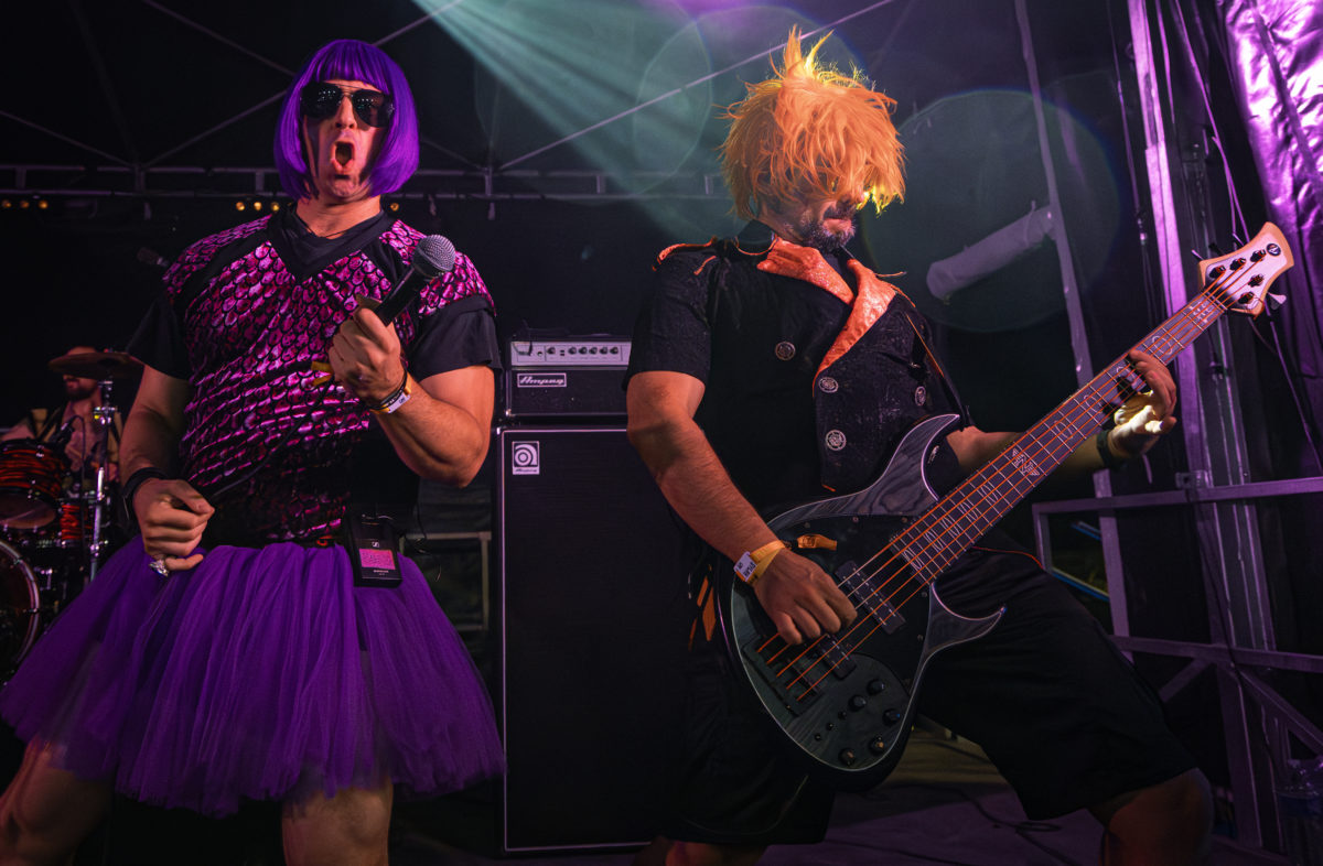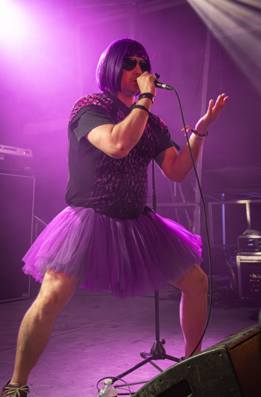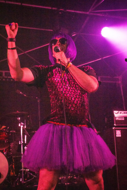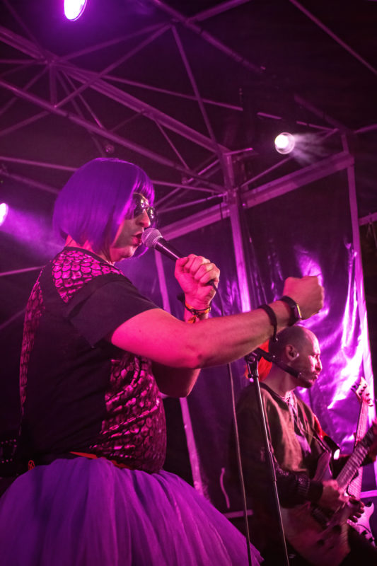 Après nous être entretenues avec le groupe un peu plus tôt dans la soirée le temps d’une interview, il est maintenant temps de voir ce que les Italiens ont dans le ventre. L’entrée fait son effet : perruque violette, tutu, bad acting. On pourrait croire qu’ils ont de l’humour. Malgré les blagues potaches, on s’ambiance. Beaucoup de monde répond à l’appel de la bêtise, car après tout, c’est pas si mal pour se détendre. Finalement, Nanowar Of Steel a tout à fait sa place en clôture de cette première soirée du Sylak. Surplombant la foule pour contempler le spectacle, du haut d’épaules d’inconnus, on constate facilement que c’est la folie. Les pas deviennent hésitants et les conversations ont le volume d’un mégaphone, mais tout le monde se parle, se marre, et surtout, veille sur celles et ceux qui ont un peu surestimé leur endurance.