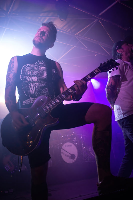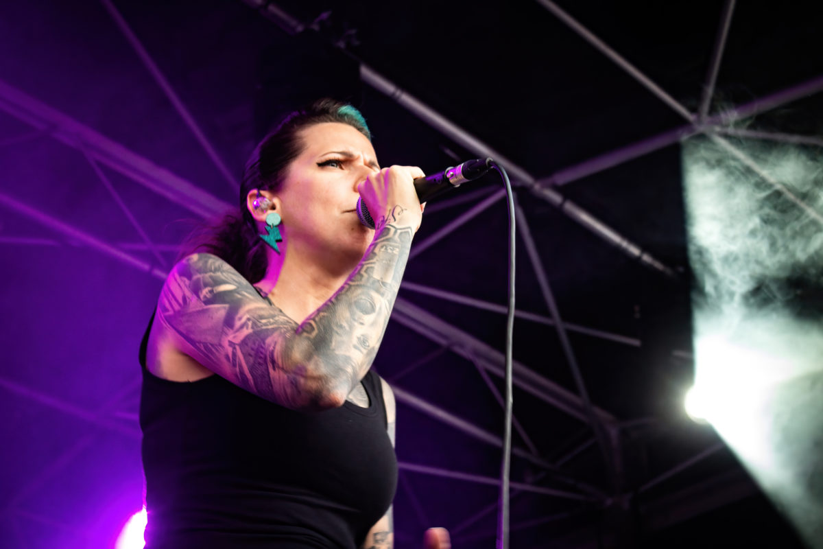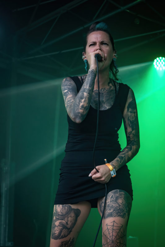 On monte encore d’un cran dans la bagarre et on commence déjà à sentir des crampes dans les jambes. En cause : les incessants circle pits engagés dans la mélasse de mousse et de poussière. Reconnaissable avec ses cheveux foncés, sertis d’une mèche bleu électrique, Aleksandra nous scotche par sa puissance vocale. Sur scène, elle déborde d’énergie. Décidémment, cette année, la programmation du vendredi nous impressionne par la qualité des lives. Sans relâche, Wake The Dead nous entraîne dans une course effrénée, puisant son énergie dans l’élan collectif et l’agitation de la foule. Malgré nous avoir tout donné, le quintet reprend la route pour jouer à quelques 430km de là, se rendant au Xtreme fest.Si ça c’est pas metal !