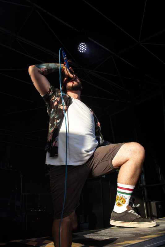 Les Lyonnais de Lifeboats enchaînent. Après avoir chanté innocemment ‘Everybody (Backstreet’s Back)’ des Backstreet Boys sonnant comme une entracte, le public est pris de court. Le groupe enchaîne direct avec une cover version punk hardcore de ce hit qui hante habituellement nos soirées karaoké. C’est la folie dans l’assemblée. Fidèle à leur image de bringeurs des plages, le groupe arbore fièrement leurs chemises florales colorées et shorts décomplexés. Mais l’habit ne fait pas le moine ! Ils ne sont pas là pour nous chanter un vieux ‘Wonderwall’ sur quatre accords en acoustique autour d’un feu de camp. Le quatuor nous secoue de sa brutalité. Tant pis pour les bleus, on se lance dans le pit !