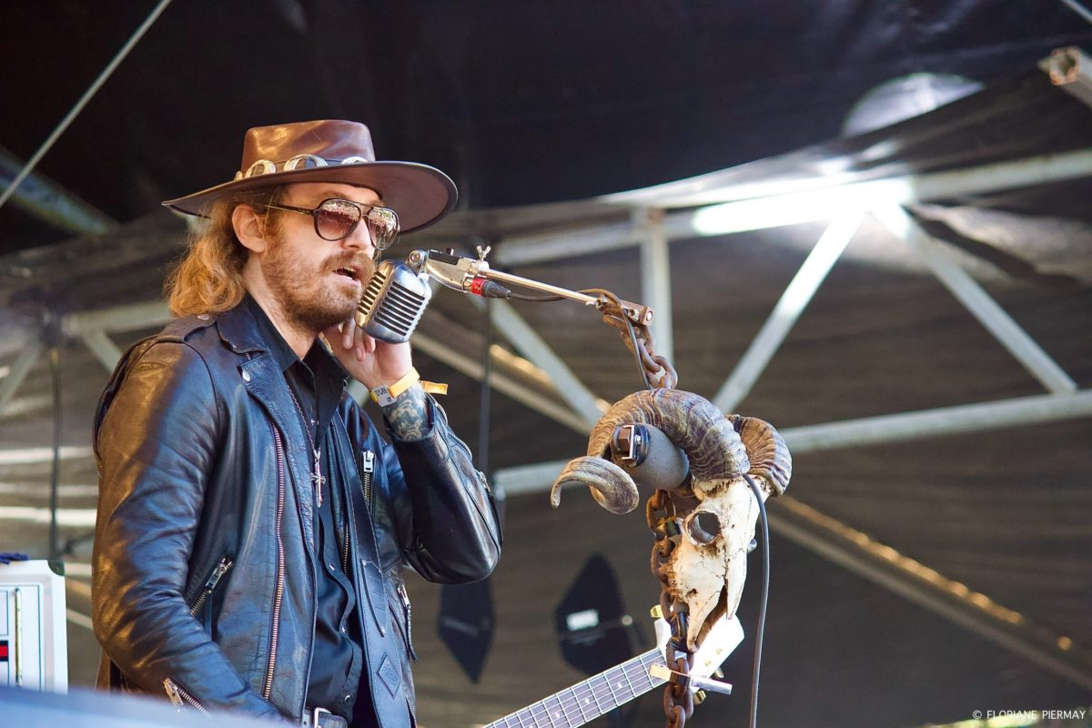 Enfin nous les voyons en live ! Jock et Jack, duo alsacien, forment Knuckle Head. La formule est audacieuse : une guitare voix, et une batterie. Rien d’autre, si ce n’est un univers musical bien à eux et une identité visuelle bien marquée. De la « dark country » diront-ils. Une définition qui colle plutôt bien à ce qu’ils font. Derrière son pied de micro en chaîne, surmonté d’un crâne de bête à cornes, Jack se tient prêt à enchaîner les morceaux. Jock, imperturbable derrière ses fûts, tape (très) fort et juste. À mi-parcours, il entame une bouteille de rouge, la clope au bec. Le chant et le jeu de Jack sont précis. ‘Ritual’, ‘Brand New Life’ puis ‘Gazoline’, morceau extrêmement puissant en live, finit de conquérir les cœurs. On n’aura malheureusement pas droit à leur dernière pépite ‘In The End’ pour coup-ci. Le duo nous confiera plus tard en backstage qu’il faudra attendre la sortie de leur prochain opus.
