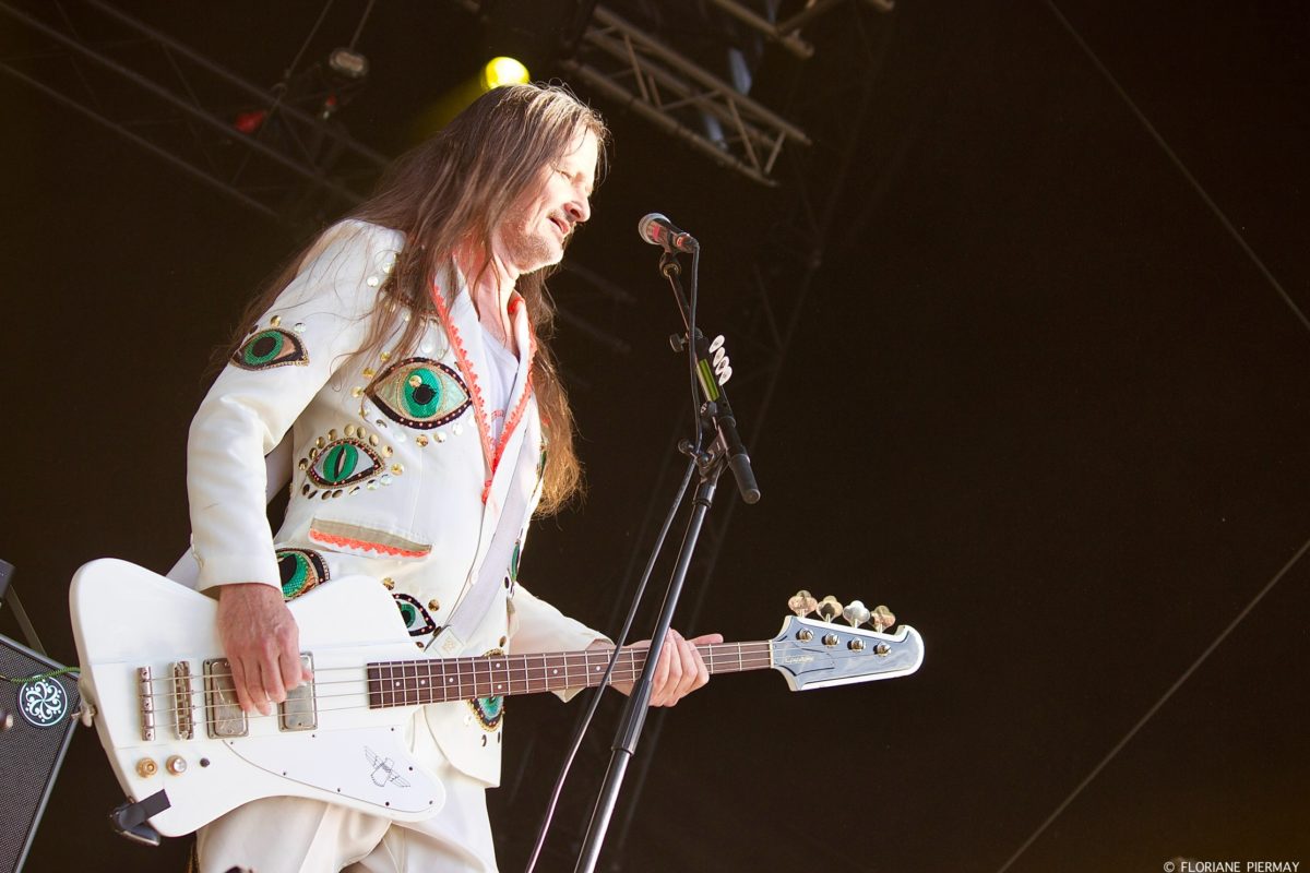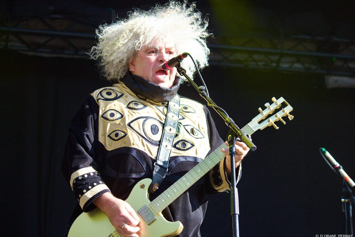 En ce dimanche 3 août 2025, le public est donc remonté à bloc pour accueillir les pionniers. Sur scène, l’effet visuel est immédiat : deux batteurs, placés en miroir, dont la synchronisation bluffante marquera tout le set. Buzz Osborne, cheveux au vent, drapé d’une toge noire ornée d’yeux brodés, est armé de sa guitare dorée. À ses côtés, Steven Shane McDonald brille dans son costume blanc éclatant, toujours souriant et complice avec le public comme avec les photographes. La formation avance avec un mélange de puissance et de maîtrise, portée par ses deux frontmen. Le public est abasourdi par tant de maîtrise. La fin de set approchant, les batteurs grimpent sur leurs chaises pour saluer la foule, sous une ovation grandement méritée. Au-delà de son étrangeté et de sa précision, ce set restera surtout gravé comme une expérience culte, rendue possible par cette proximité unique qu’offre le Sylak.
