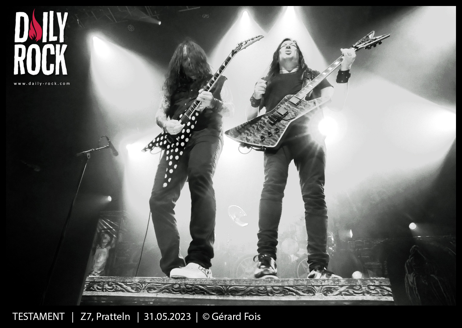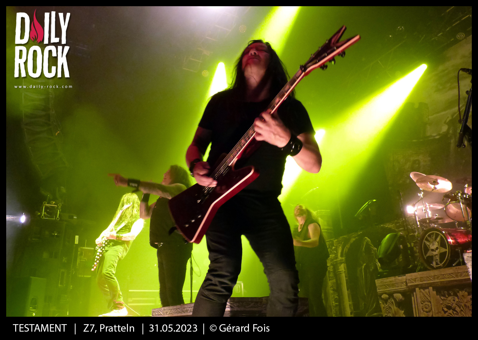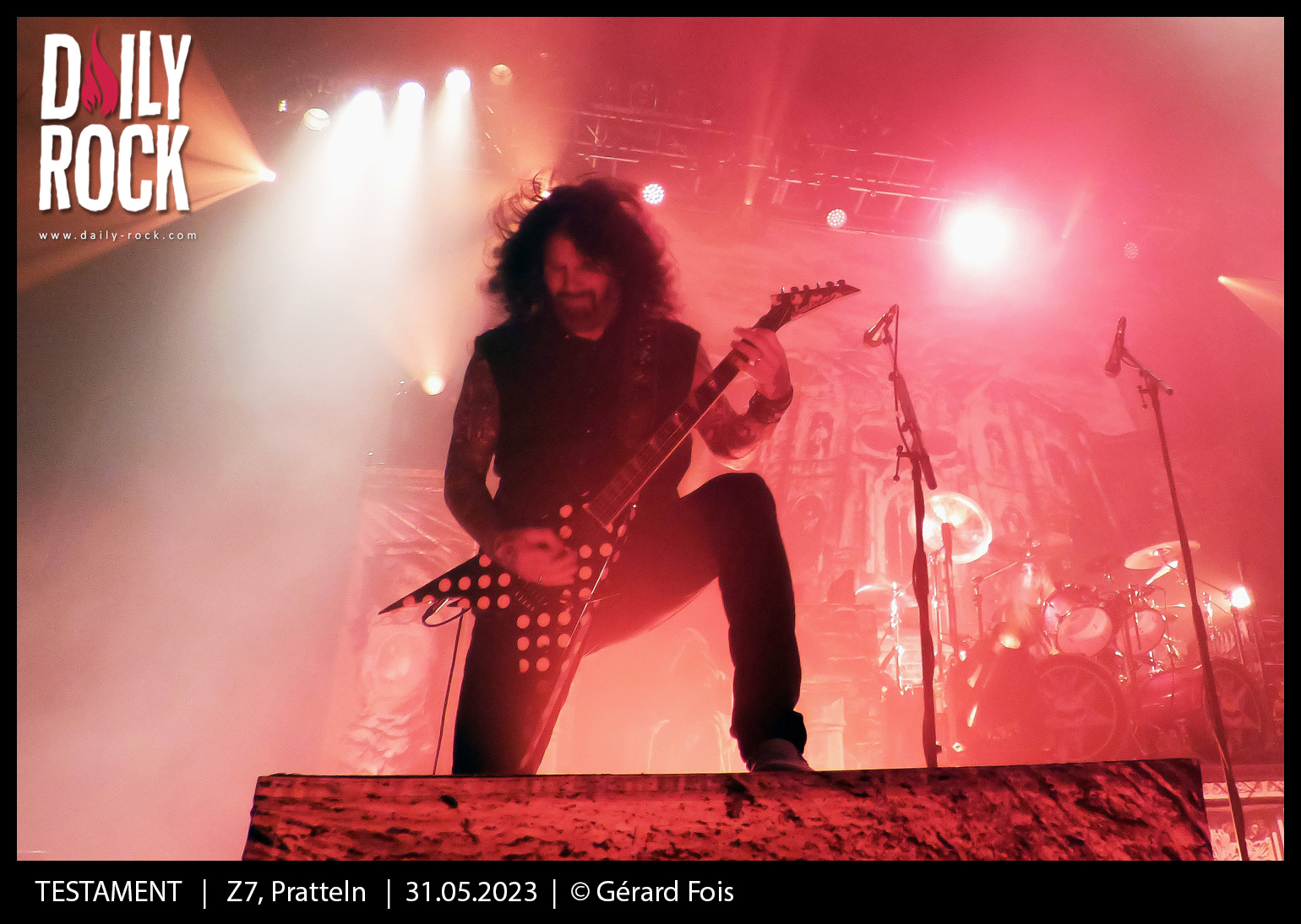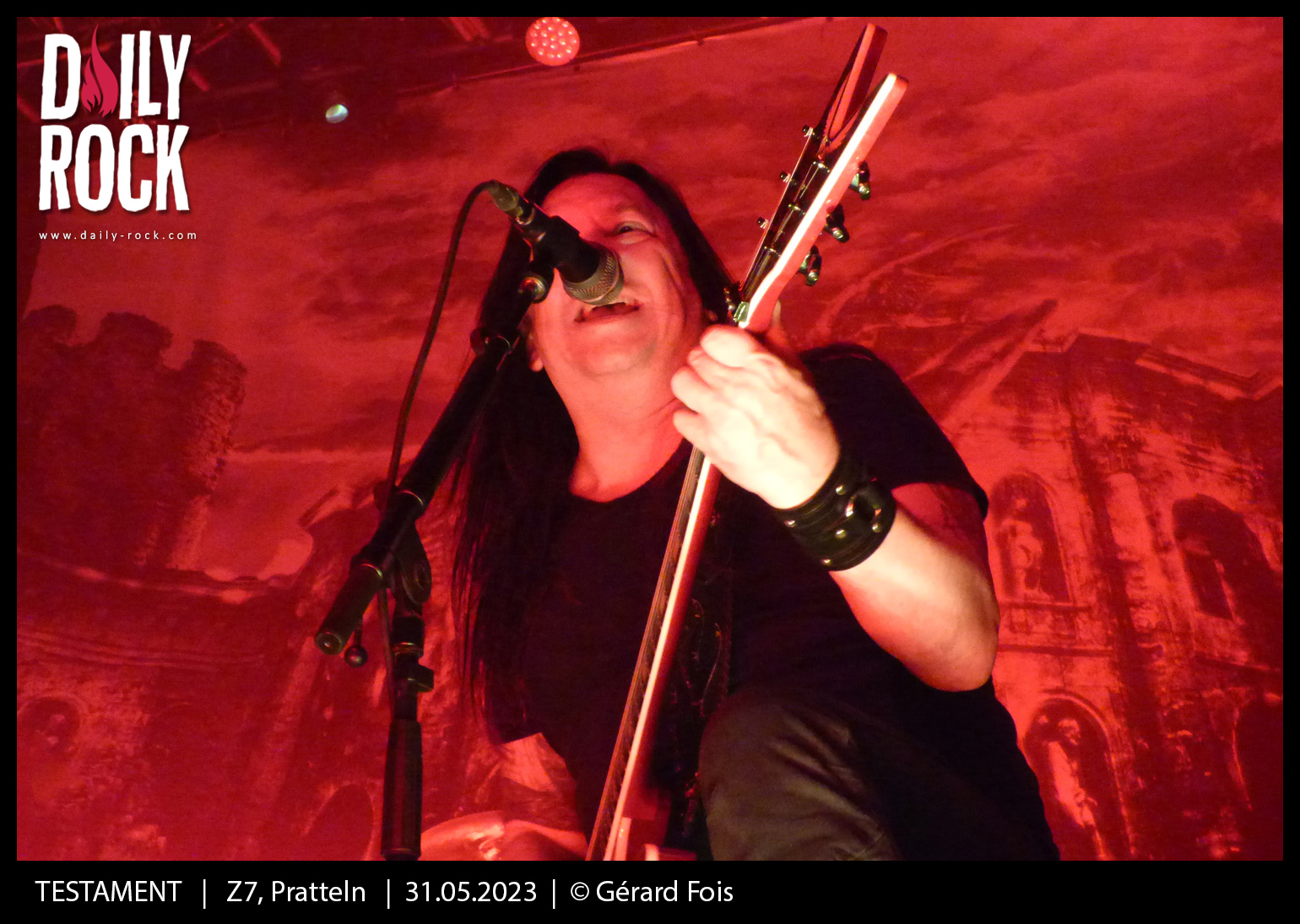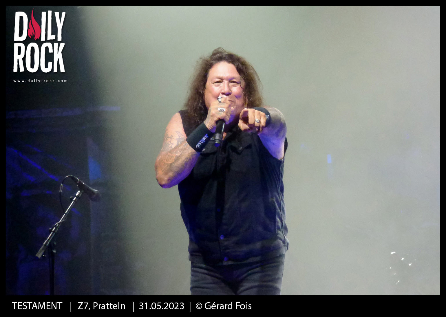 Le groupe déboule à 100 000 à l’heure avec « Rise up » et fait feu de tout bois ! Chuck Billy, Eric Peterson et Steve Di Girogio ne font pas semblant et sont heureux de voir que du monde s’est déplacé de manière non négligeable au Z7 malgré les festivals qui commencent à dérouler !
