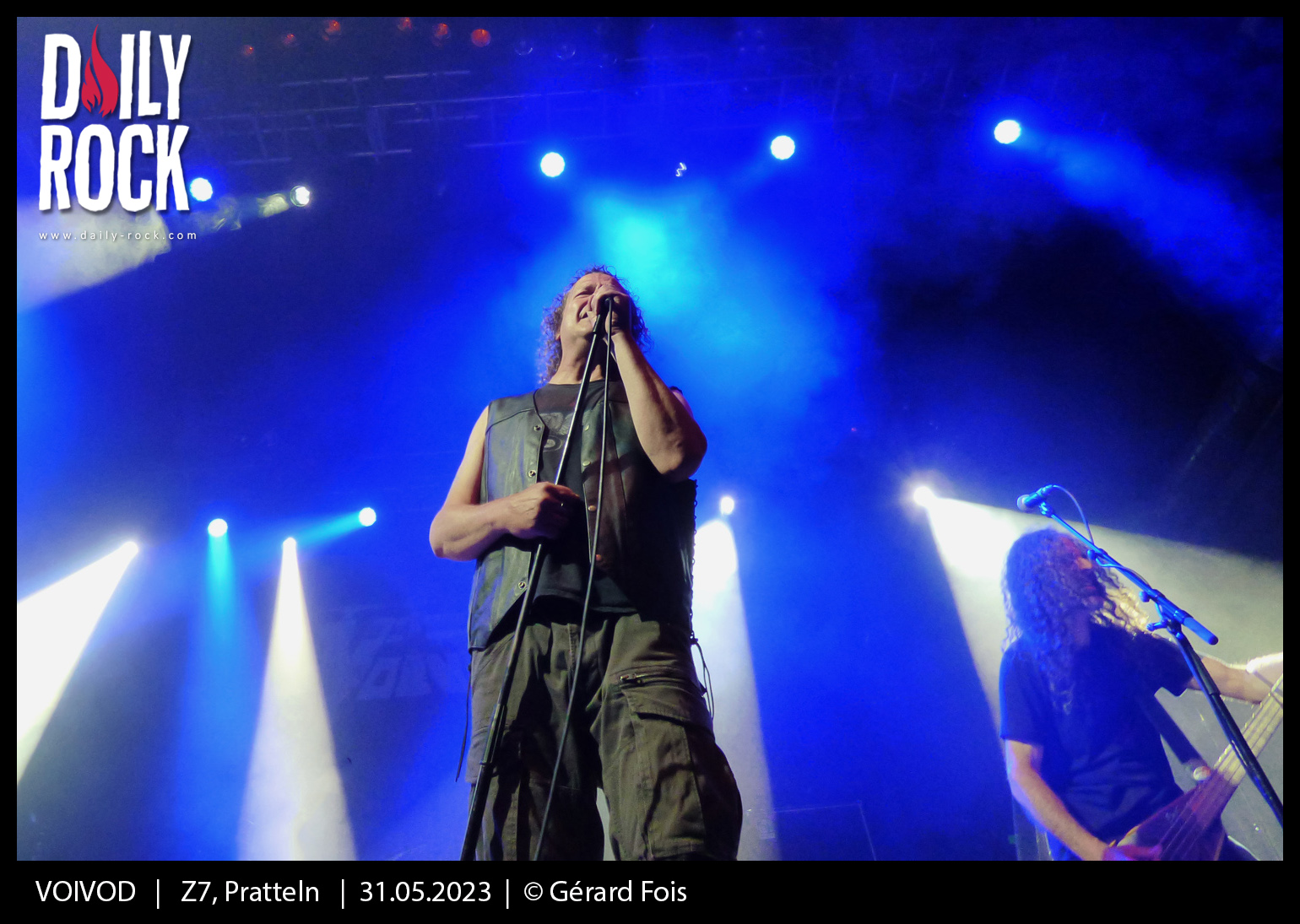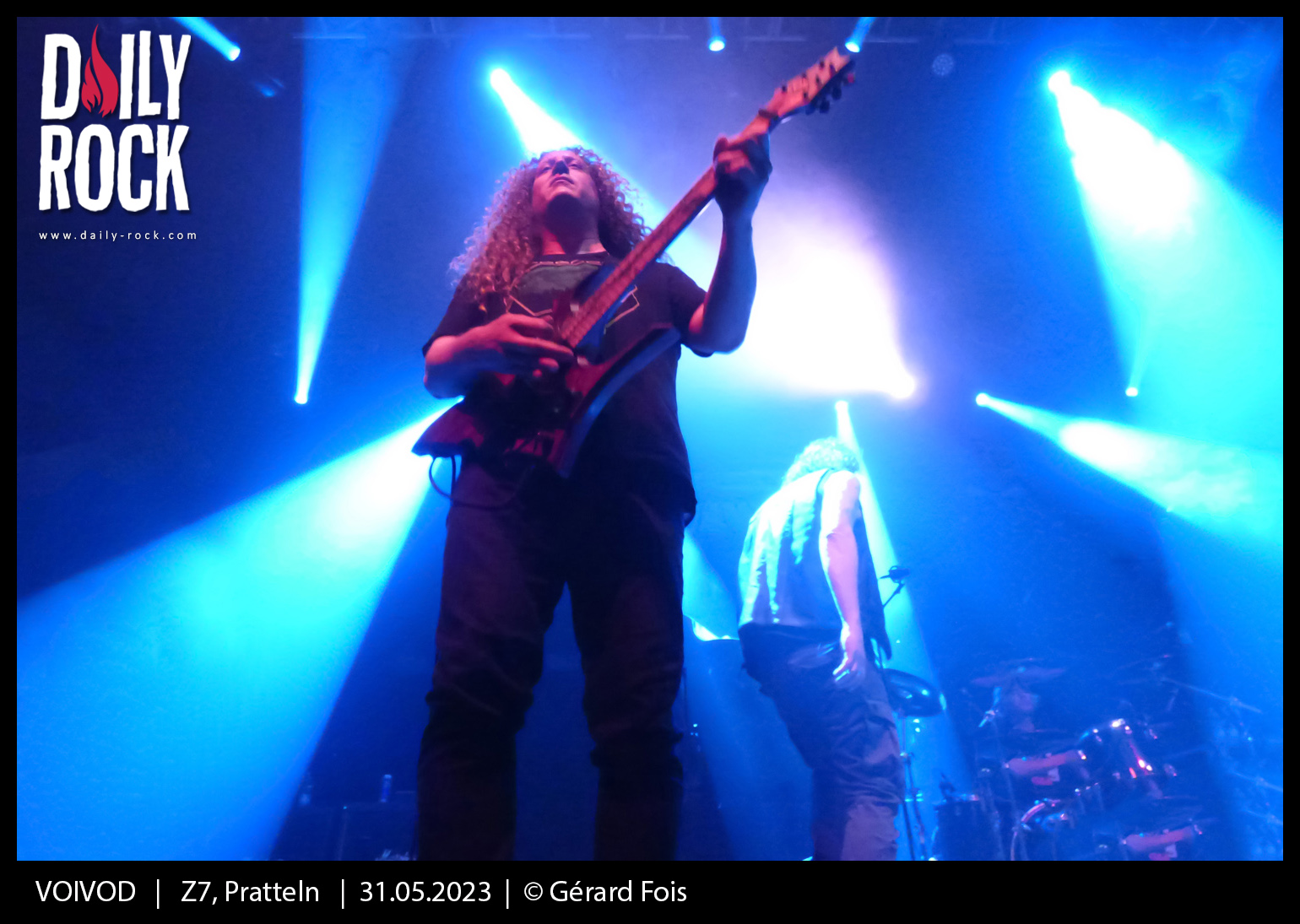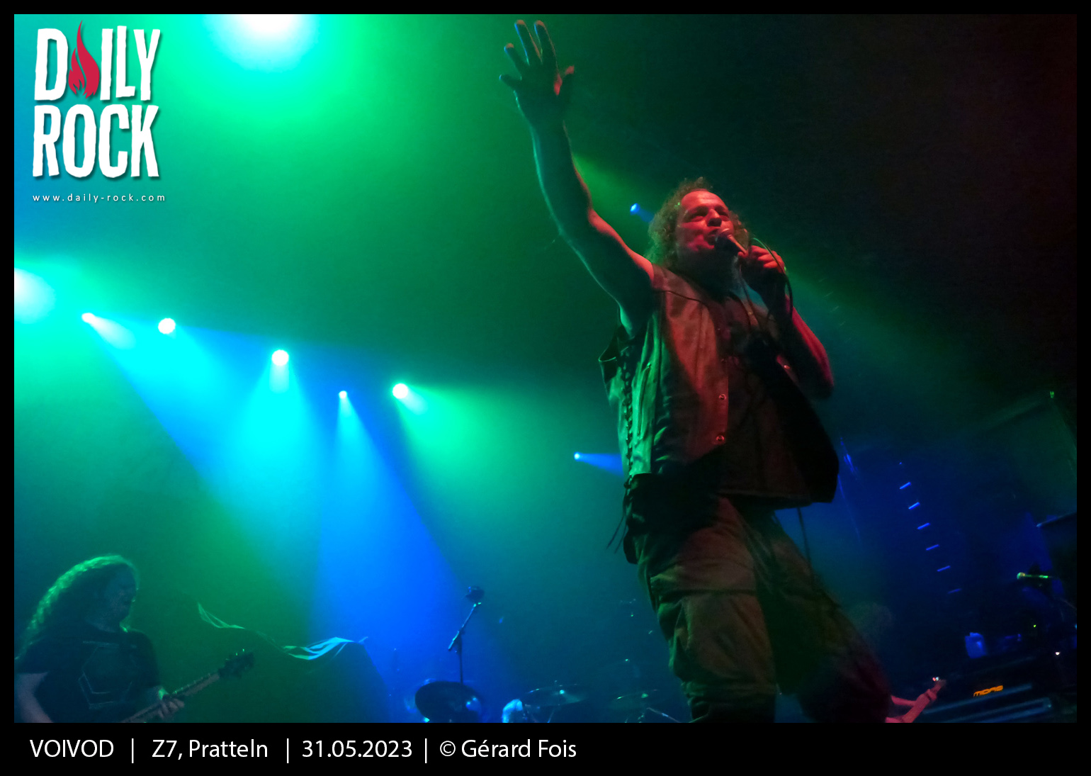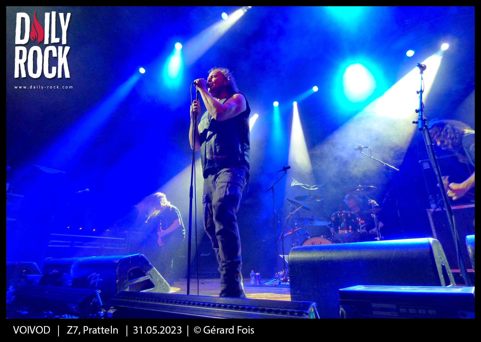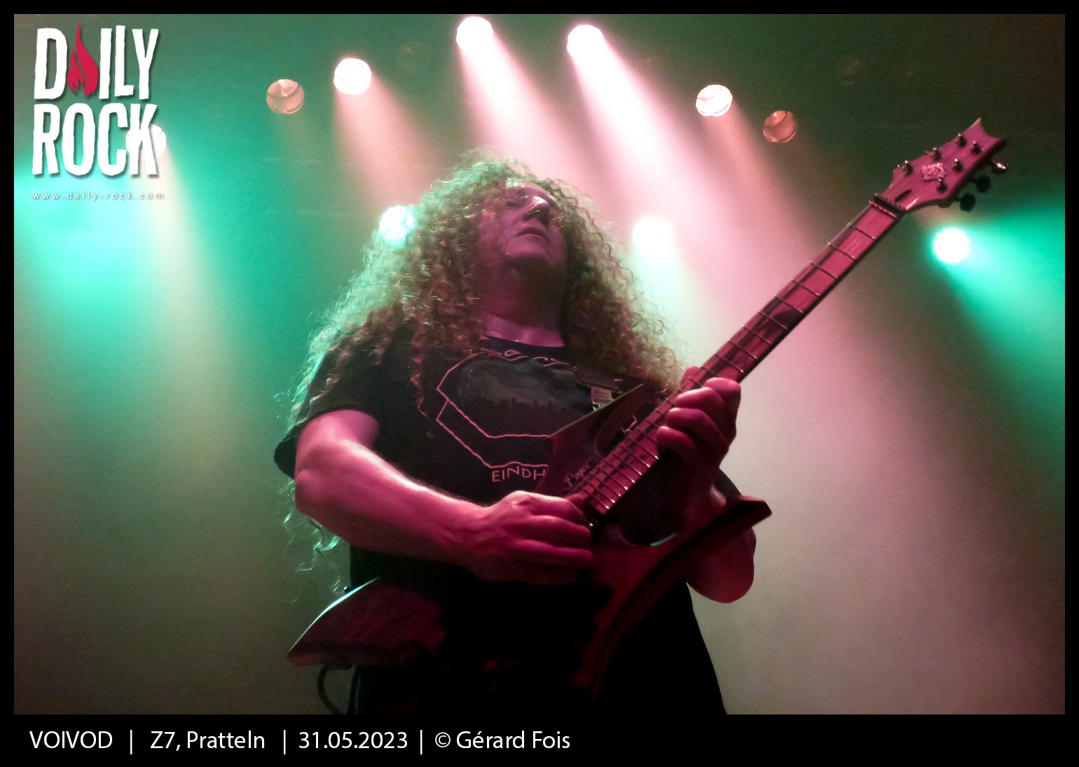 Quelque par ce désistement a permis à Voivod de jouer plus longtemps pour notre plaisir (même si j’aurais adoré revoir Exodus aussi) et le groupe ne s’est pas privé pour piocher dans son riche et varié répertoire (ben oui comparez leurs débuts avec « The Outer Limits » jusqu’aux derniers albums et vous comprendrez que le groupe aime brouiller les pistes). Cependant l’énergie promulguée aux titres et la maîtrise technique dont font preuve désormais les membres permettent de lisser les époques et on redécouvre des périodes plus « obscures » avec « Rebel Robot » tiré de l’album « Voivod » (sur lequel, on le rappelle, Jason Newsted officiait !) ou « Rise » de l’album « Phobos ». La part belle de la set list est basée sur le dernier album « Synchro Anarchy » dont le titre a été joué, « Sleeves off » et surtout le génial « Holographic thinking ». Bizarrement il n’y a qu’ « Obsolete Beings » de leur très réussi album « The wake » qui est joué ce soir ! Trop cool que le groupe ai joué « Fix my heart » de «The Outer Limits »! Le concert dans son ensemble a été très bon avec un Snake présentant les morceaux avec détails pour un set d’1 heure à peu près. Voivod, un des groupes humainement les plus sympas du circuit, a conquis !