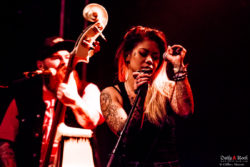 Nous voici donc à nouveau dans ce sympathique Musigburg, cette fois-ci pour applaudir The Creepshow. Mais avant le rockabilly des Canadiens, c’est aux Américains de Gallows Bound d’ouvrir les feux avec leur punk/bluegrass (en tout cas c’est comme ça qu’on aurait envie de résumer leur style, puisqu’ils ont quand même l’originalité d’avoir un banjo et une mandoline sur scène). Un groupe très sympa et une bonne façon d’entamer la soirée avant l’arrivée de The Creepshow, forcément un peu plus « pêchus » avec leur guitares électriques. Là aussi, un beau moment de psychobilly et autres habiles variations autour du rock’n’roll.