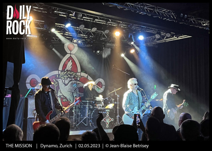 Plus de trois ans que l’on attendait la venue en Suisse de Wayne Hussey et ses lascars, une fois de plus une tournée déplacée à de nombreuses reprises en raison de la pandémie. Le point positif est que THE MISSION jouait au Dynamo quasiment à guichets fermés. Parmi l’assistance, une bonne horde de quadras et quinquagénaires fans de la première heure. THE MISSION a cette particularité de rallier des fans de rock – voire hard rock, gothique, rock progressif et psychédélique tant sa musique est riche et teintée de couleurs diverses dans un harmonieux mélange.