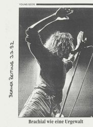Formé il y a plus de trois décennies, The Young Gods reste, après quelques changements de personnel, onze albums studio, des milliers de concerts, les accolades du « milieu » et l’adhésion du public, l’une des propositions les plus remarquables que la Suisse ait connu en matière de rock indépendant. Une telle réputation, c’est bien sûr à son indéniable talent que le groupe la doit, éclatant dès ses débuts ; l’édification d’un univers sonore d’ascendance post-punk, industrielle et électronique, à partir de matériaux hétérogènes (l’histoire de la musique occidentale enregistrée, ancienne ou contemporaine, savante ou populaire) hachés et régurgités par le sampler, et parfait par la voix unique de Franz Treichler. Cette sensibilité musicale attisée par une approche audacieuse de la technologie se révèlera éminemment féconde, jusqu’à aujourd’hui, périodiquement mobilisée pour de nouvelles expériences, aux accents cabaret, néo-psychédéliques, ambient, blues, acoustiques, etc. L’influence des Young Gods innervera le rock de cette fin de XXe siècle, revendiquée régulièrement jusque par les plus grands noms de la pop internationale. Mais ce succès est aussi le fruit d’une intense détermination, celle de se donner les moyens de porter son art à ses auditeurs-spectateurs, propulsant rapidement le groupe sur la route et au-devant d’aventures mémorables, sans toutefois renoncer à ses velléités expérimentales et son indépendance.