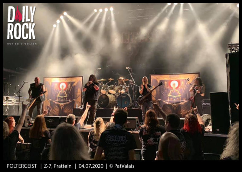 Ensuite, c’est Poltergeist, groupe suisse actif depuis déjà 1987, qui présente ce soir son nouvel album « Feather of Truth » (leur dernier CD datant déjà de 2016). Le son est déjà bien meilleur et le groupe en profite pour présenter quelques nouveaux morceaux, mais aussi plusieurs « vieilleries » : une belle mise en bouche avant l’arrivée de la tête d’affiche du jour.
