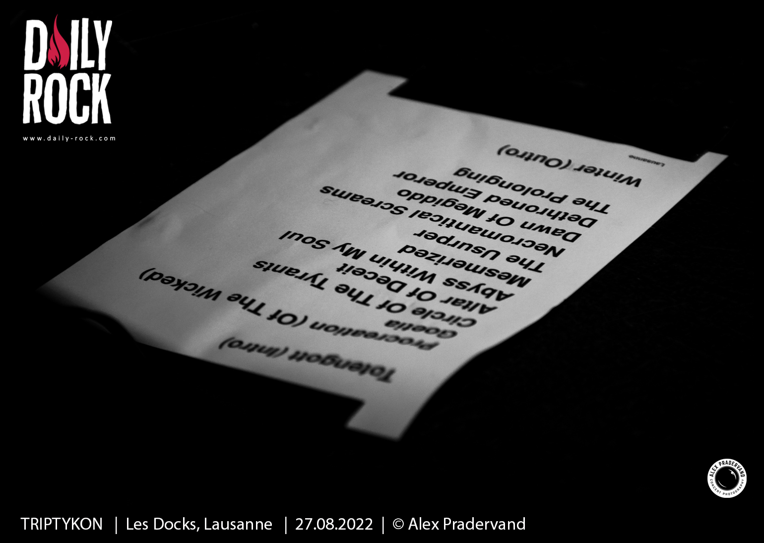 Accueil Concerts TRIPTYKON + DISPARAGED + KASSOGTHA + ALMØST HUMAN – Les Docks, Lausanne... ConcertsPhotos TRIPTYKON + DISPARAGED + KASSOGTHA + ALMØST HUMAN – Les Docks, Lausanne – 27 août 2022 Par Alex Pradervand - 2 septembre 2022 0 FacebookTwitterWhatsAppLinkedinEmailTelegram Retour en images sur la splendide soirée metal suisse qui ouvrait la saison 2022-2023 de la salle lausannoise des Docks. Photos : Alex Pradervand ARTICLES CONNEXESPLUS DE L'AUTEUR Photos BATTLE BEAST + DOMINUM + MAJESTICA – Salle Métropole, Lausanne – 9 décembre 2025 Photos CORONER + SILVER DUST + KASSOGTHA – Les Docks, Lausanne – 28 novembre 2025 Concerts ROD STEWART – Hallenstadion Zurich – 5 décembre 2025 PublicitéLes plus lus Foire Aux Vins – Colmar, Alsace, France – 27 juillet... Concerts 3 juillet 2017 BENIGHTED – Vingt ans dans le pit Interviews 10 octobre 2018 This Misery Garden sort un nouvel album News 3 avril 2017 Dance Laury Dance rock aussi Ste-Thérèse XXXX - Non classé 19 février 2014