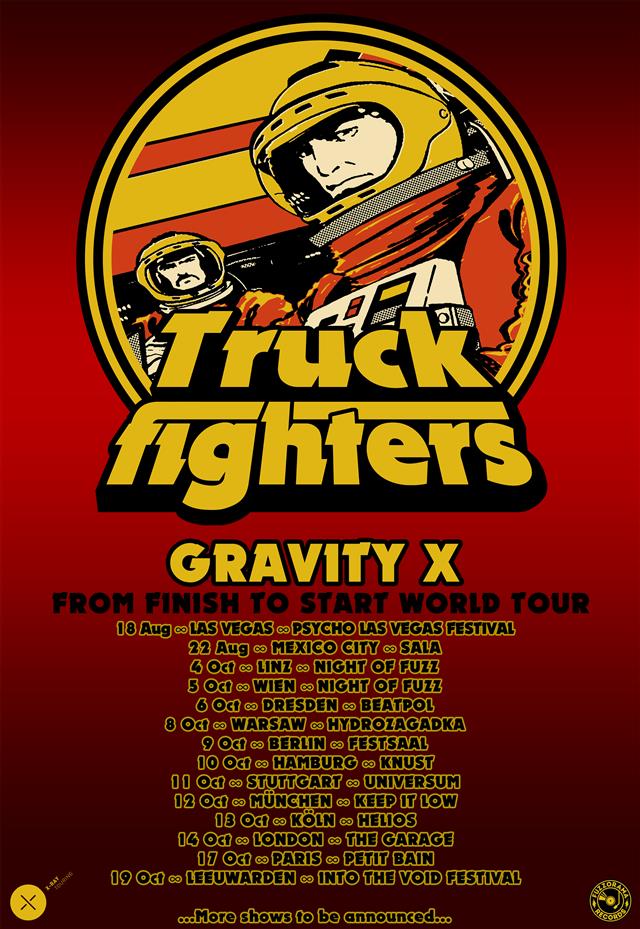 Après presque deux ans dans l’ombre, le groupe de stoner suédois Truckfighters revient pour une tournée mondiale afin de célébrer le quinzième anniversaire de son premier album « Gravity X ». Sorti en Europe en 2005 puis en 2006 aux Etats-Unis, ce premier opus fêtera ses quinze ans en 2020. La tournée mondiale débutera en août à Las Vegas, elle continuera ensuite en Europe puis dans le reste du monde en 2020 et 2021.