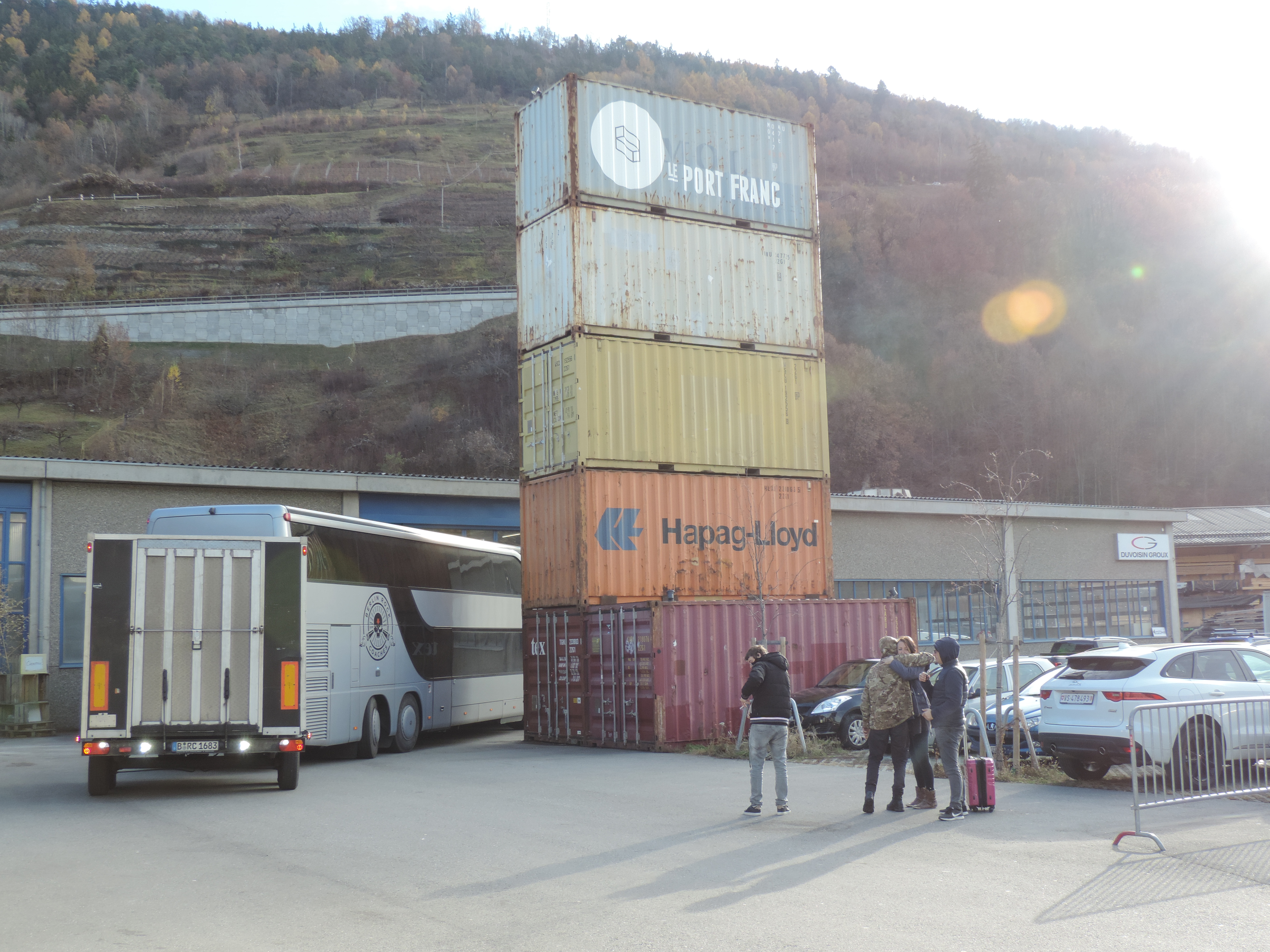 Le téléphone sonne. Le tour manager annonce que la douane suisse a fait du zèle et que le bus ne sera pas à Sion avant 14h30 ! Il faut tout changer, adapter, réorganiser dans l’urgence. Du coup, on improvise une bonne fondue pour se réchauffer et remettre nos idées en place. Un bon coup de blanc et nous allons un peu mieux.
