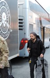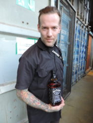 L’immense bus et sa remorque pointent, enfin, le bout du nez…. Ouf ! Ils sont là ! Leo arrive en tête suivi des autres musiciens et des accompagnants. On aperçoit tout de suite sur leurs visages que la route a été longue, trop longue. Ils prennent leur loge à leur guise pendant que leur chauffeur arrive, par un exploit incroyable, à zigzaguer autour du Port Franc avec son énorme bus, pour amener la remorque devant l’entrée des artistes. Igor, l’autre guitariste, se délecte du joli buffet mis à leur disposition et le tour manager, James Anderson, vient chercher le remontant ultime pour galvaniser ses troupes. Il disparaît dans la loge avec une bouteille de Jack Daniel’s.