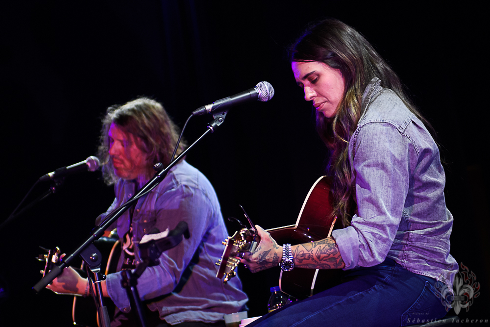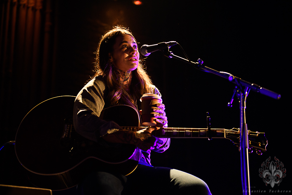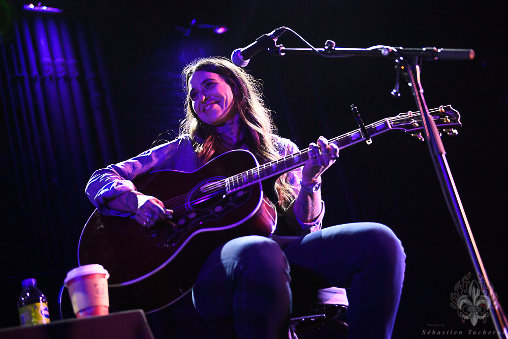 Hier soir, à Montréal, j’ai eu la chance de voir Morgan Wade en mode acoustique et intime. Pour être honnête, je ne la connaissais presque pas avant ça. J’étais là par curiosité, et je me suis vite fait prendre au jeu par l’authenticité de l’artiste. Morgan, accompagnée d’un autre guitariste dont je n’ai malheureusement pas retenu le nom, a offert un show sans artifice : juste deux tabourets, une table sur scène, et un éclairage simple. On sentait une belle complicité entre eux, même si mon anglais quasi nul m’a empêché de capter toutes les conversations qu’ils avaient entre les morceaux. Chaque chanson de sa setlist, livrée de façon si dépouillée, m’a raconté une histoire. Oui, j’ai fait mes recherches après pour mieux comprendre le sens des titres joués ce soir-là. C’est à ce moment-là que j’ai compris la force de ses textes : ils sont véritablement un livre ouvert sur sa vie.