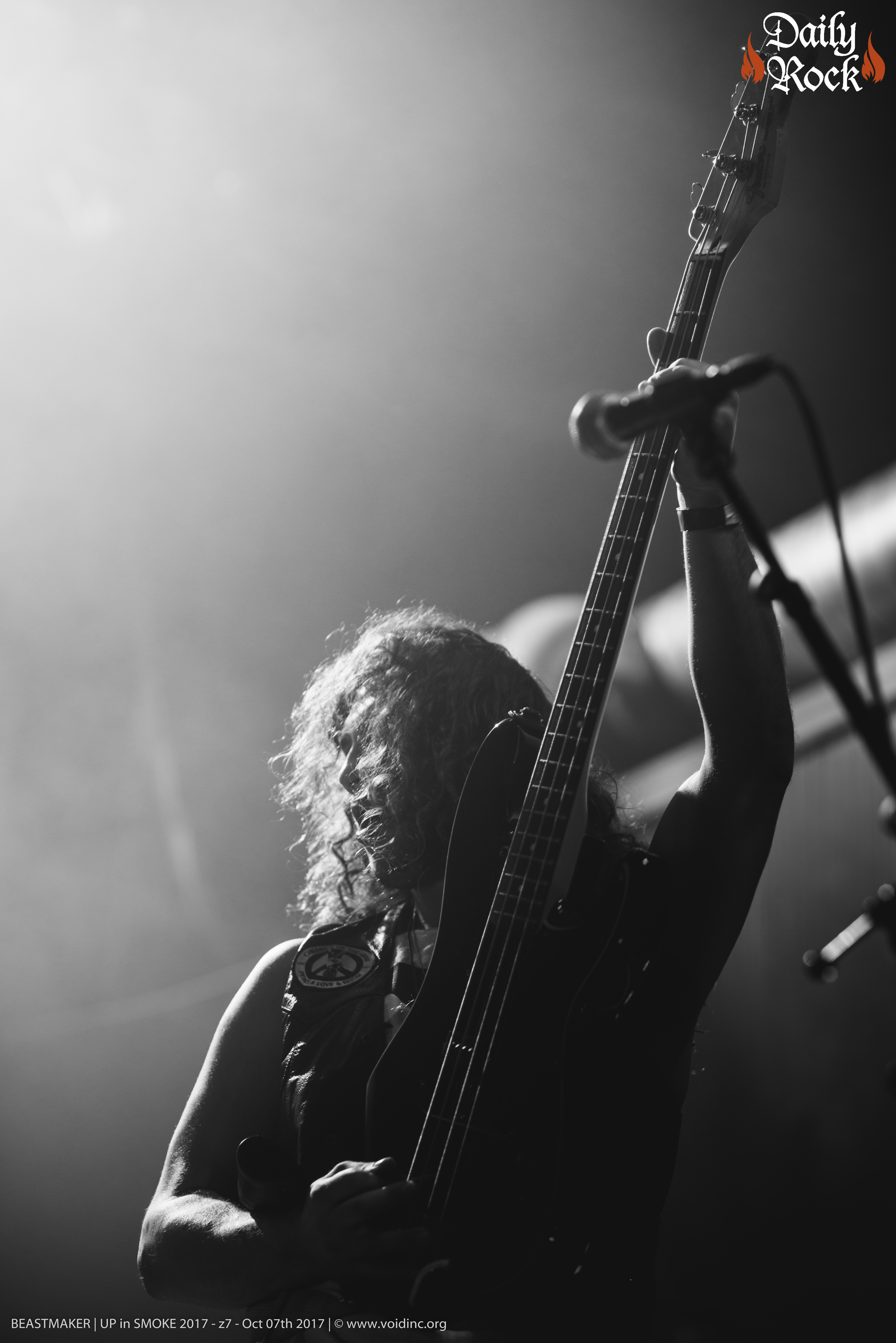 Nous voilà de retour dans la salle obscure qui se prête à merveille aux tonitruants vrombissements électriques d’un cerbère borgne à douze queues ; « Ladies and gentlemen, Beastmaker from fucking California ». Un son beaucoup plus lourd et … bestial, metal, bercé d’extraits audio saturés, le groupe met tout le monde d’accord, mais finira en avance, Trevor William Church se voyant forcé à battre en retraite après d’irrémédiables traitrises de plusieurs de ses cordes. Une petite pause et on continue avec cette programmation qui malgré quelques fausses notes, s’annonce royale. C’est donc à l’extérieur qu’on se confronte à la violence de Toner Low !
