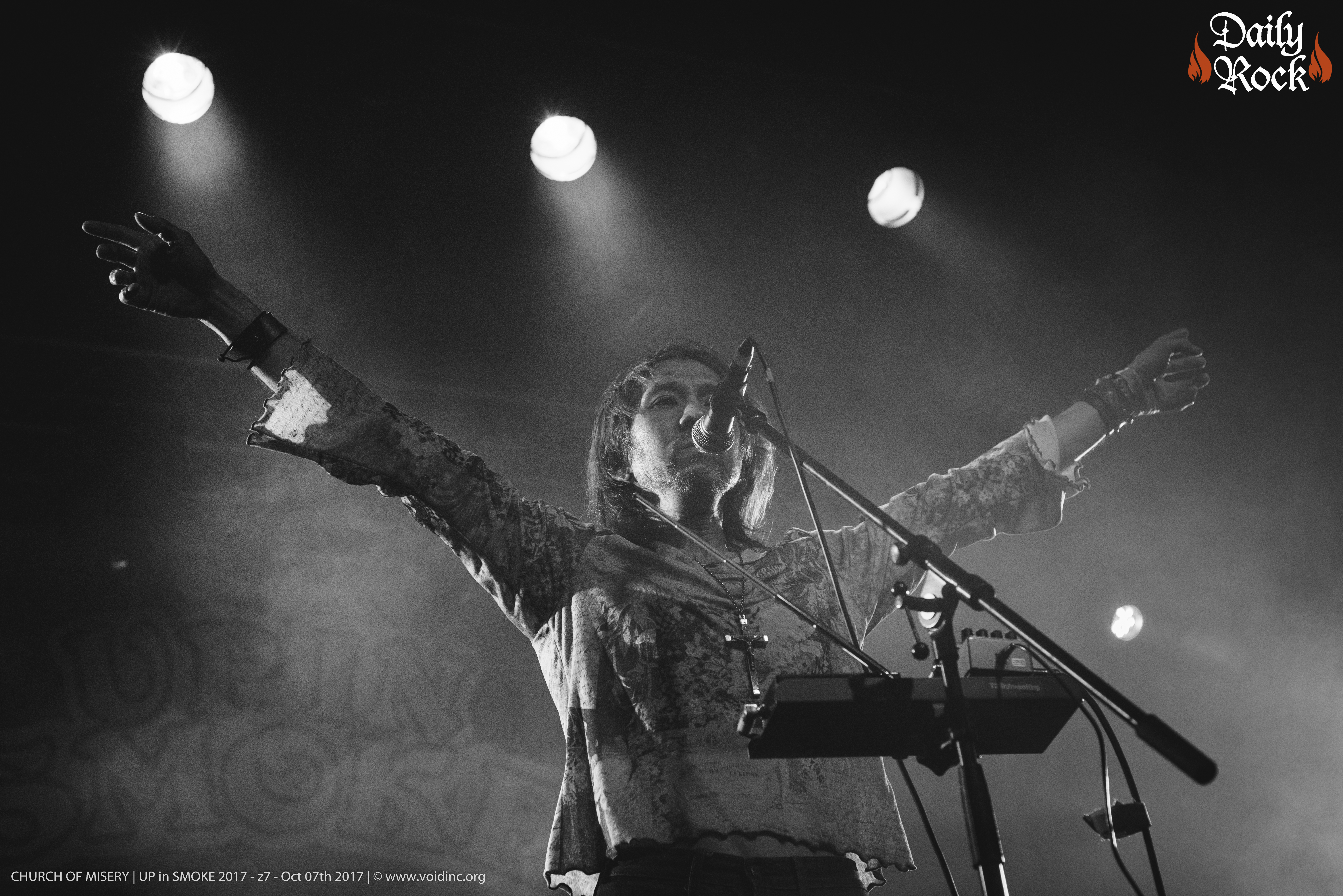 On nage à nouveau dans le brouillard et on découvre les édifiant Church of Misery qui prêche la joie et les bienfaits d’un doom de qualité. Une eau bénite bienvenue qui coule dans nos nuques échauffées. Pour rester dans un contexte religieusement enfumé, Stoned Jesus nous invite, quant à eux, à rallier leur cause avec une énergie et un son puissant à en décoiffer un crucifié. Ils sont trois et pourtant semble être dix sur une scène qui semble, une fois n’est pas coutume, bien trop petite.