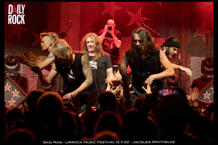 SKID ROW : Les voilà enfin, déjà annoncé après Nazareth à la fin de la dernière édition, les stars US sont là et bien là. Attitude Punk-Rock, les kids de New Jersey attaquent le concert dans une ambiance de feu. Leur nouveau chanteur est une vraie pile montée sur ressort, une boule d’énergie qui a une voix spectaculaire, les vieux briscards jouent sur leur expérience à merveille, de l’électrique à l’acoustique, et le jeune loup assure devant, une redécouverte de ce band, vu il y a cinq ans à Liverpool, un concert à nouveau génial qui a mis la banane à tout le monde pour cette fin de festival en beauté !