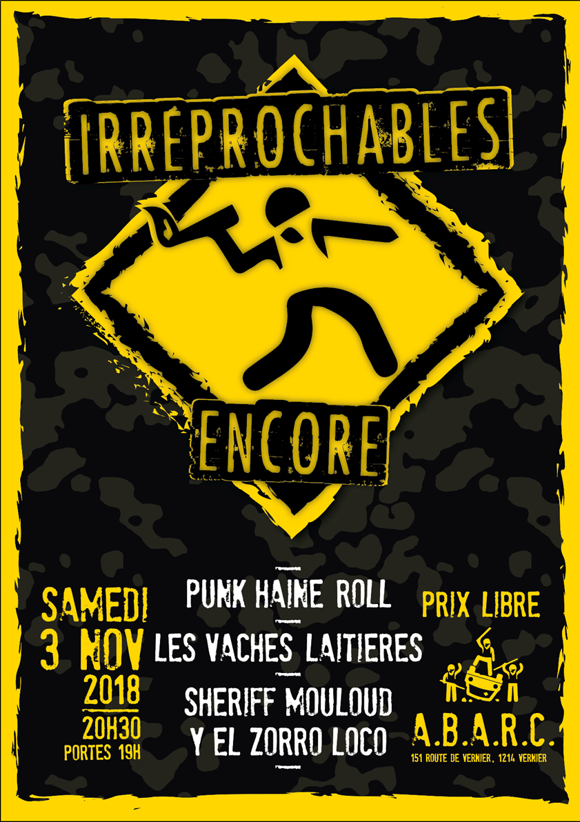 Et le samedi 3 novembre à l’ABARC de Vernier (GE), avec Punk Haine Roll et Sheriff Mouloud y El Zorro Loco.