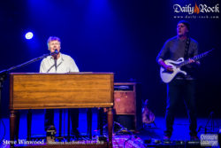 Contraste pour le concert de Steve Winwood avec des conditions photos complètement à l’opposé de celles de Van Morrison. Certes, toujours l’habituel 3 morceaux, mais une scène dépouillée, sans retours de scène, un seul pied de micro trône au centre et les musiciens sont déployés en demi-cercle pour qu’on puisse bien voir chacun d’eux. En plus une lumière bien présente notamment lors de solos ou interventions de chacun.
