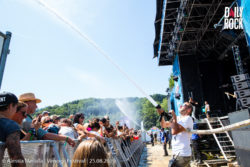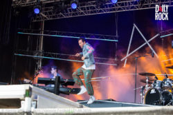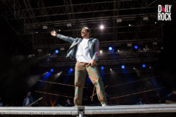 Jérémy Frérot a ensuite embarqué le Venoge Festival pour un voyage musical et marin. Il se crée petit à petit une atmosphère de vacances (même si elles touchent bientôt à leurs fins pour la plupart des jeunes spectateurs). Une voile de bateau se déploiera même au fond de la scène. Avec les bâches bleues qui entourent la structure, on se croirait presque sur l’océan. A défaut de pouvoir se rafraîchir dans l’eau, le chanteur n’hésite pas à prendre des bains de foule. Au niveau musical, les fans des Frero Delavega n’ont pas été déçu puisque, entre deux compositions personnelles, Jérémy Frérot a offert quelques moments de nostalgie, notamment avec ‘Le Cœur Élephant’ ou ‘Le Chant des Sirènes’. Voyage assuré !