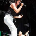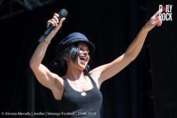 La chaleur est presque insoutenable lorsque Jenifer monte sur scène à 13h. Pourtant, les fans ne bronchent pas, ils en tirent même une énergie incroyable. En effet, à peine la chanteuse avait-elle entamé les premières paroles de ‘Hey Jen’ qu’on peinait presque à l’entendre tant le public chantait fort. La française est étonnante. Sans artifices sur scène (les pompiers aspergeant la foule avec les lances d’incendie ne comptent pas), avec son groupe de musiciennes, elle a offert une performance pas si mauvaise que ça. Une voix au top et une bonne humeur du début à la fin. On se rend compte qu’on connaît presque toutes les chansons et au final, on se prend au jeu et on chante à tue-tête. Le public est conquis. Un jeune fan ira même jusqu’à lui offrir son doudou et sa lolette, séquence « c’est trop mignoooon » garantie !