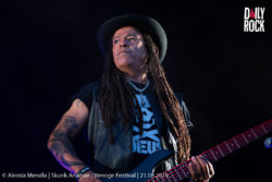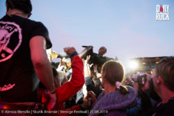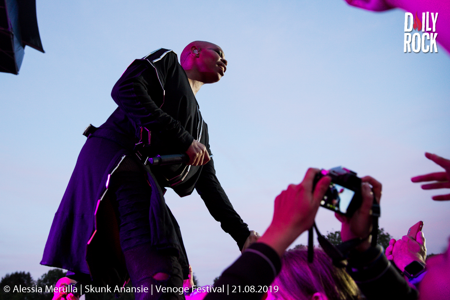 Lorsque l’on va voir Skunk Anansie, on s’attend à quelque chose de grandiose. Mais quand le concert commence, c’est au-delà de nos attentes. Vêtue d’une cape qui lui donnait des allures d’anémone argentée, Skin montre tout de suite à quel niveau se trouve l’intensité. Elle met une énergie folle dans ses moindres mouvements. Les gens veulent voir le groupe se donner à fond et être en phase avec ses fans nous a dit la chanteuse lors de notre entrevue. C’est donc sans hésiter qu’elle s’offrira plusieurs bains de foule, créant ainsi un contact des plus directs avec son public.