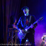 Du côté de la Scène de la Licorne, le public est happé dans une ambiance mystérieuse et théâtrale. Silver Dust, costumés et maquillés, viennent présenter leur spectacle. Entre écrans interactifs, danseuse, changements de décors, les Jurassiens proposent plus qu’un concert de rock. Le public s’amasse petit à petit devant la scène, curieux de voir ce qui s’y passe et semble conquis.