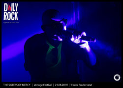 A défaut d’un nouvel album, que l’on attend (plus) depuis très longtemps, les Sisters Of Mercy sont venus avec leur nouveau guitariste, Dylan Smith, recrue efficace pour seconder Ben Christo, fidèle au poste depuis plus de 10 ans. Toujours dans un brouillard de fumée et avec un light show pour épileptiques en phase terminale, on a eu droit à la setlist des festivals, soit une heure de classiques, dont les immanquables Vision Ting, Temple Of Love et This Corrosion en fin de set. Peu de ces fameux nouveaux titres qui n’ont jamais été enregistrés, à part We Are The Same Suzanne et Crash And Burn. Du vu et revu que l’on aimerait bien voir évoluer un peu.