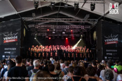 À 17h, la tente de la River Stage est déjà pleine. Sur scène, plus un centimètre carré de libre. La cause ? Lakevoices. Les chanteur.euse.s des chorales de Lakevoices Cudrefin et de Lakevoices Lausanne se sont réuni.e.s pour un concert spécialement mis sur pieds pour l’événement. Dirigés par Bertrand Fénart, les choristes passent de Lady Gaga à Stromae ou encore à Daft Punk. Les arrangements sont dynamiques et le résultat impressionnant.