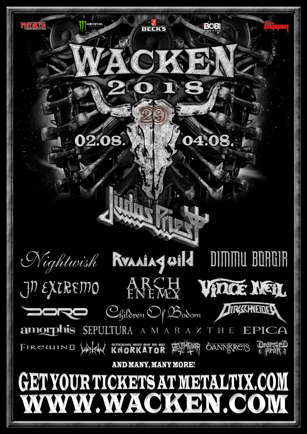 La 29ème édition du Wacken Open Air qui se déroulera du 2 au 4 août 2018 nous gâte déjà, avec l’annonce récente de nouveaux groupes qui se joindront à la fête, parmi lesquels Judas Priest, Dimmu Borgir, ou encore Children Of Bodom.