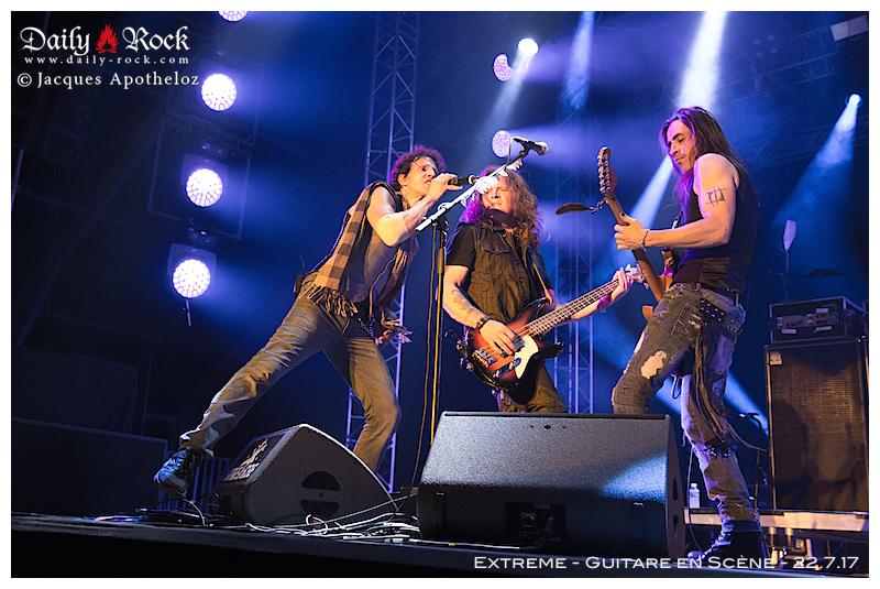 Suite à Revenge vient au programme Deströyer 666, et encore une fois, il s’agit d’une formation que je ne connais pas. À l’inverse du premier groupe, toutefois, je suis agréablement surprise par ce que je découvre. Leur tonalité trash-black offre quelque chose de particulièrement authentique et d’accrocheur. Le chanteur et guitariste K.K. Warslut interagit beaucoup avec la foule, lui et les autres membres du groupe ont une belle énergie sur scène à laquelle le public répond vraiment très bien. Il joue à peine 45 minutes avant de devoir laisser place aux techniciens, mais moi ainsi que le reste de l’assistance en aurions pris bien plus.