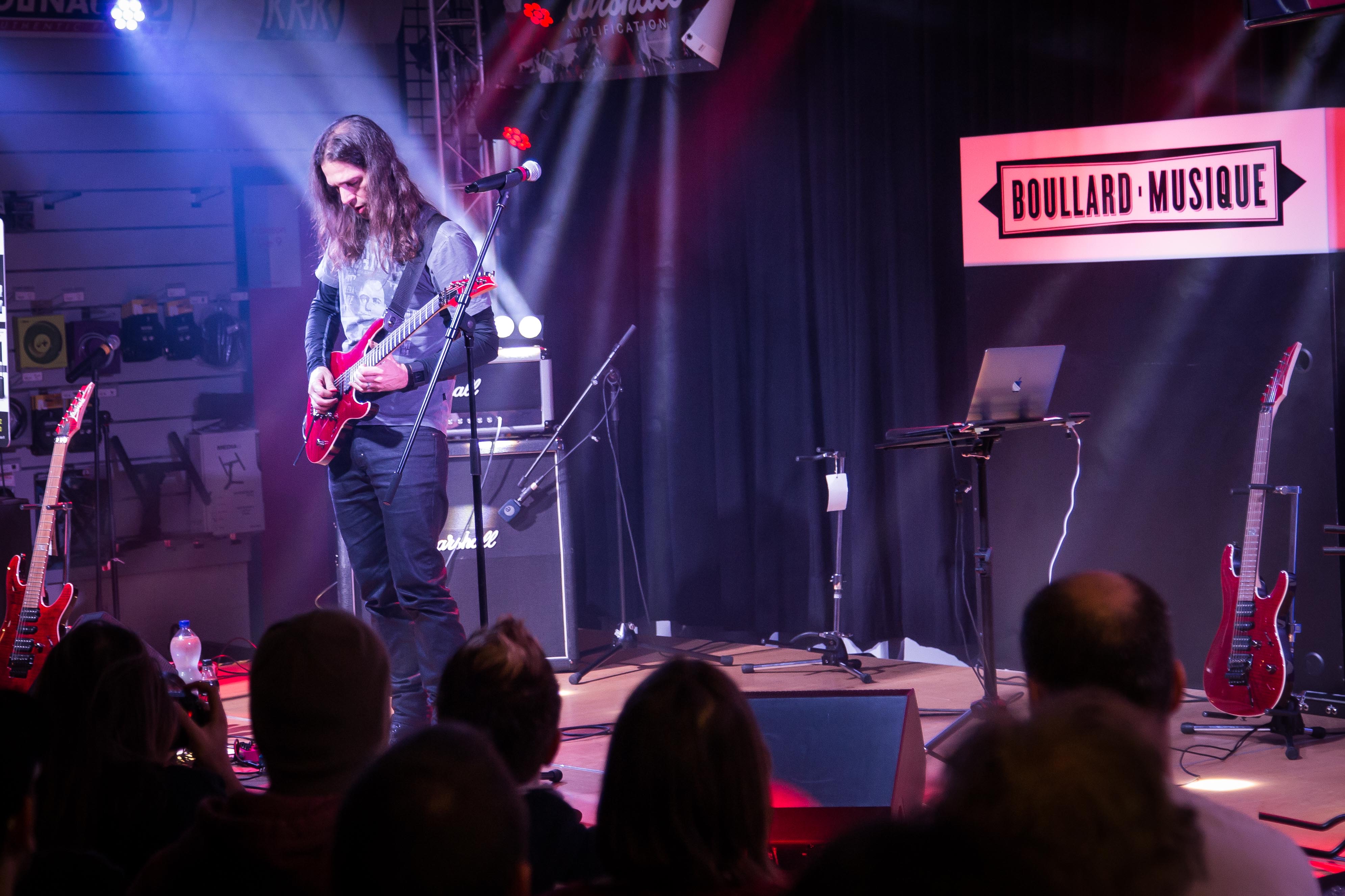 C’est dans le grand shop morgien Boullard Musique que le désormais guitariste de Megadeth faisait son show. Devant un parterre très fourni, le Brésilien virtuose a alterné discussions technico-rigolotes et morceaux instrumentaux démontrant tout son savoir-faire en matière de six-cordes. Les doigts de Kiko se baladent sur son manche tel une gazelle émoustillée. Avec une belle aisance, il a montré ses talents entre deux questions. Devant un public attentif, il a répondu à des questions de techniques basiques ou plus spécifiques, essayant d’expliquer en mots ce qui n’est pas toujours explicable. Morceaux heavy, ethniques, ballades ou bossa nova, il démontre une technique classieuse. Rappelant l’importance de toujours réviser ses gammes, mêmes les plus simples, il a insisté sur le fait de tenir un planning pour structurer son apprentissage. Des heures et des heures de travail quotidien ! Il faut souffrir pour être un guitariste pro ! Abordant également la question de la créativité, il a précisé qu’il était bon de se laisser aller à jouer toutes sortes de choses, mêmes simples et d’essayer d’en tirer des variations diverses sans se limiter ou s’autocensurer. Durant plus de 2 heures, Kiko Loureiro a séduit son monde et peut-être fait rêver quelques-uns à des carrières musicales.