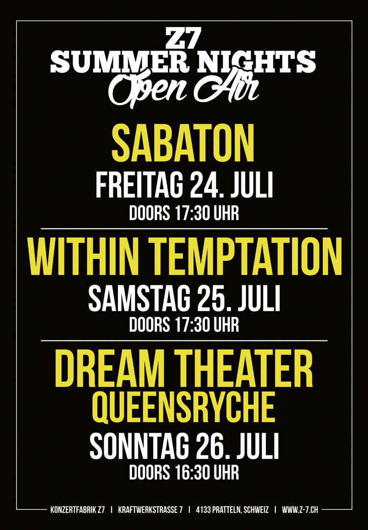 La dernière soirée, celle du 26 juillet, est placée sous le signe du Metal progressif un brin nostalgique. Malgré son statut de groupe majeur, DREAM THEATER a un peu sa carrière et surtout sa plus belle discographie derrière lui, mais il ne faut pas bouder son plaisir de voir ces musiciens hors pair fouler une scène suisse. Quant à QUEENSRYCHE, groupe fantastique pendant la dernière décennie du XXème siècle qui a donné naissance à ces chefs d’oeuvre que sont “Operation Mindcrime” ou autre ”Empire”, la scission entre les musiciens et leur chanteur emblématique Geoff Tate a eu l’effet d’un sabordage en règle.