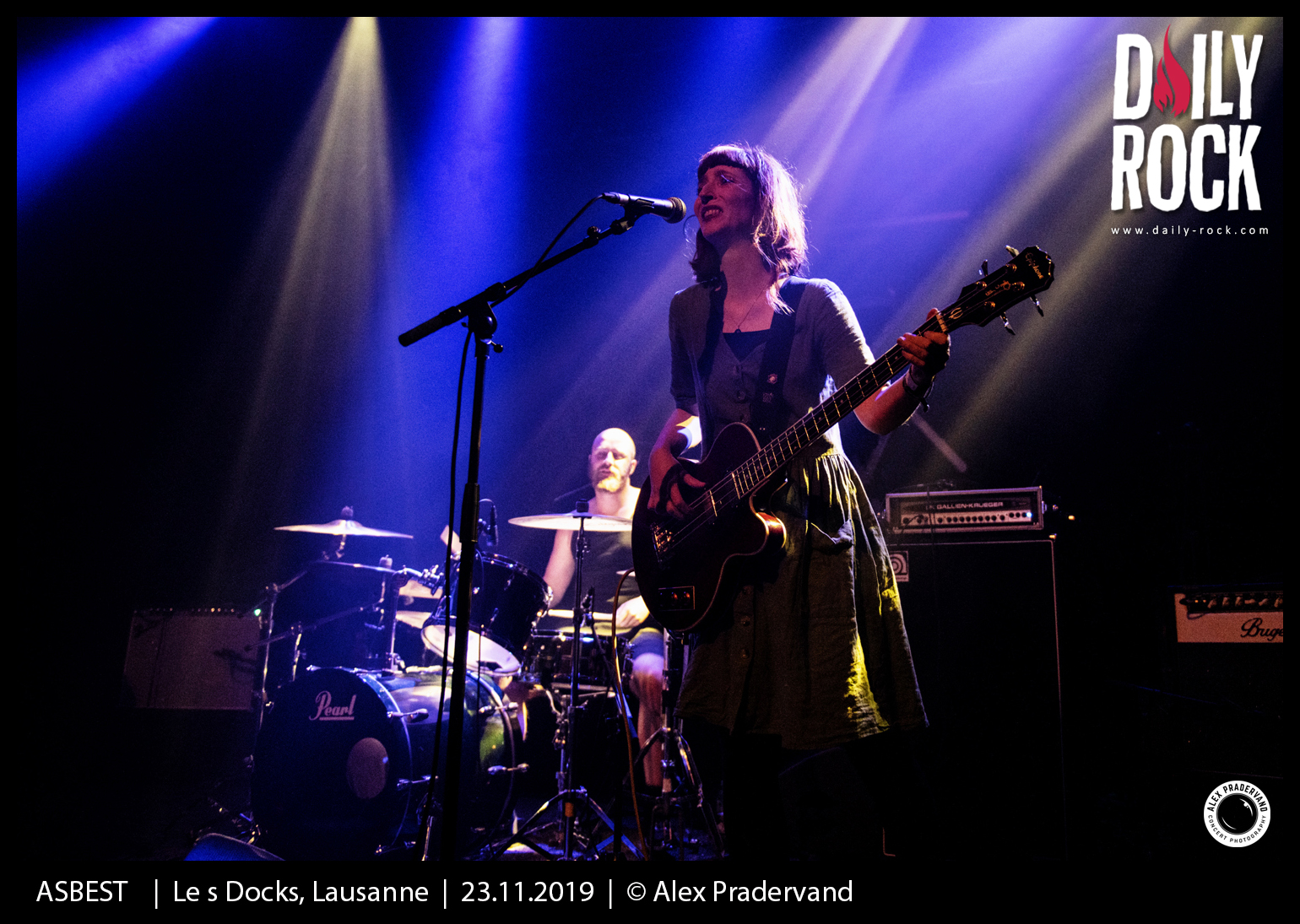 La trio bâlois Asbest se charge d’inaugurer la soirée en plongeant sans détour le public dans l’ambiance lugubre et sombre qui sera le signe distinctif de la soirée. Entre noise et shoegaze, le chant fantomatique mi-crié, mi-parlé de la chanteuse Robyn Trachsel tente de nous entraîner dans une spirale infernale. Avec un succès mitigé me concernant, mais peut-être que le contraste est trop violent, moi qui – il y a 5 minutes encore – sirotait un vin chaud dans l’ambiance bon enfant et joyeuse du marché de Noël. Or, Asbest n’est pas là pour chanter une comptine ou trier des noix. Les visages sont sérieux, la dynamique lancinante, les morceaux enchaînés, mais la tension ne prend pas. La faute peut-être à un certain manque de charisme, qui peine du coup à capter l’attention sur scène.