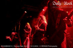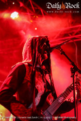 Parfois, ça vaut la peine de changer ses habitudes. En début de semaine, nous étions coincés dans la circulation en direction de Zürich pour un autre concert, et cette fois-ci nous nous sommes avisés de prendre le train. Plus court, mais plus cher en définitive. Cela nous a pourtant permis d’arriver bien en avance dans la salle pratiquement vide du Dynamo à Zürich, nous permettant de se poser et de pouvoir assister à la première partie dès le début. Schammasch s’avance, et nous propose du death / black metal avant-gardiste. Le public hoche la tête, happé dans le tourbillon d’instruments et la dualité des deux voix se remplaçant ou se complétant. Leur show est simple, tirant sur le mystique tout en simplicité et efficacité. On se rappellera du vol de baguette du batteur, résultant en un son de tom quelque peu faiblard sur la pauvre victime.